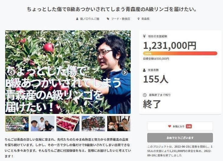 多くの方々から「ちょっとした傷でB級扱いされてしまうなんてもったいない」「フードロスを減らすSDGsの観点からも素敵なプロジェクトですね」と多くの応援の声を頂くことができました。そして目標金額を大きく超えたご支援を頂くことができました。