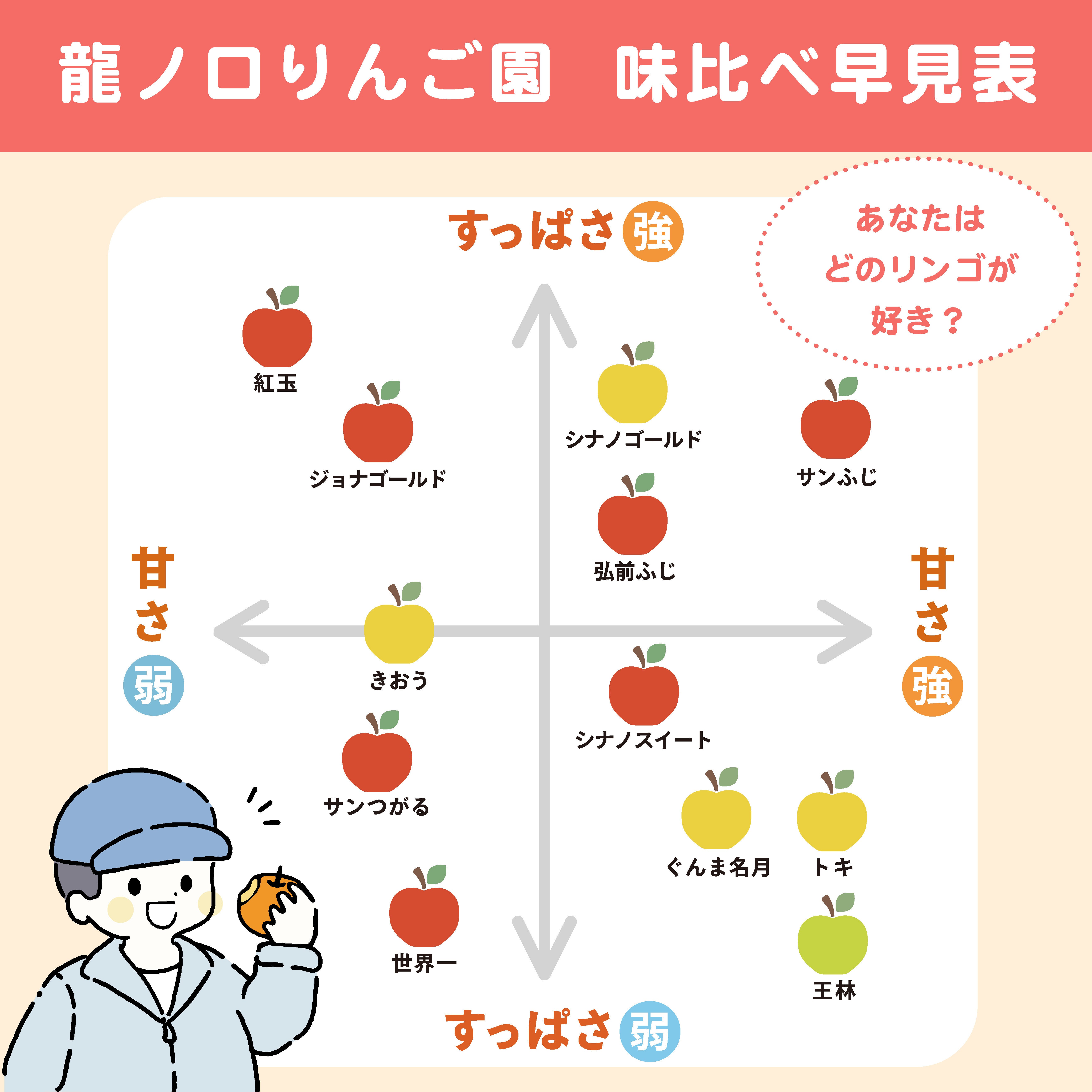 また、りんごの品種による味の違いを知ってもらおうと考えています。甘味や酸味の違いが異なるりんごを食べ比べて頂き、お気に入りの品種を見つけて頂きたいです。特に定期コースは4回にわたって8品種のりんごを食べ比べして頂けるのでオススメです!