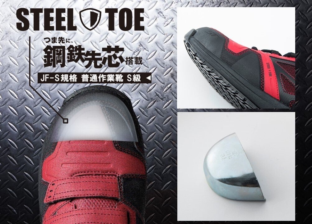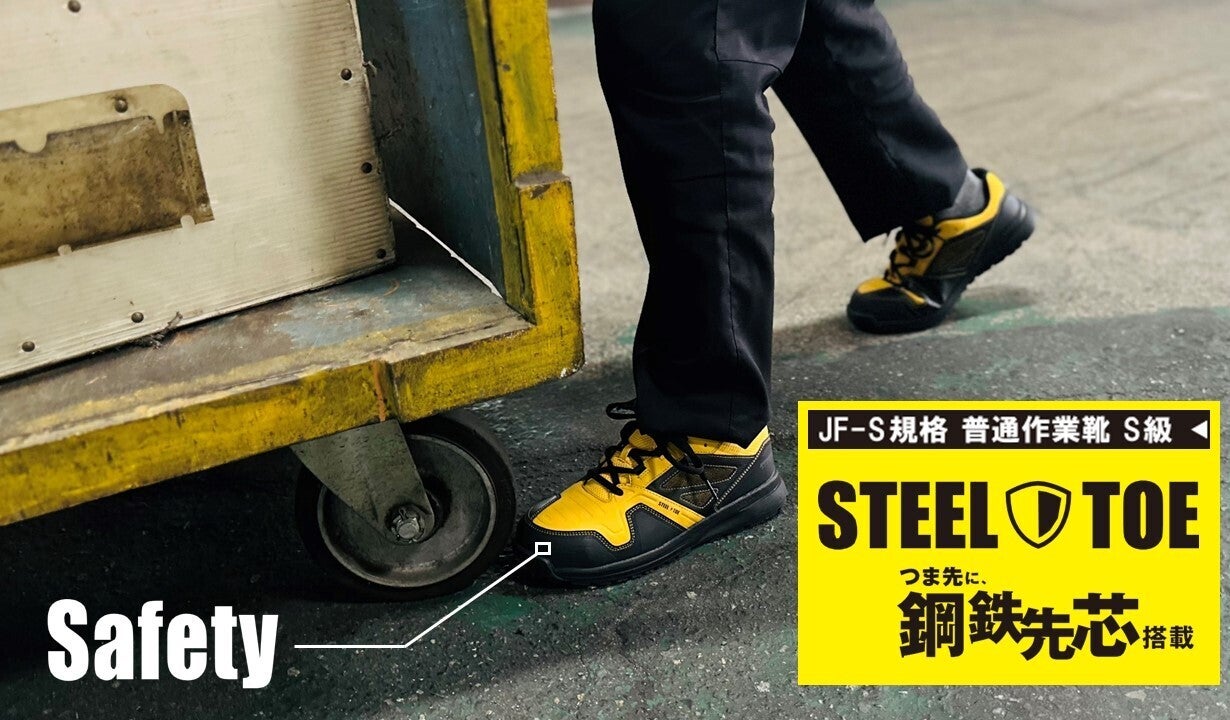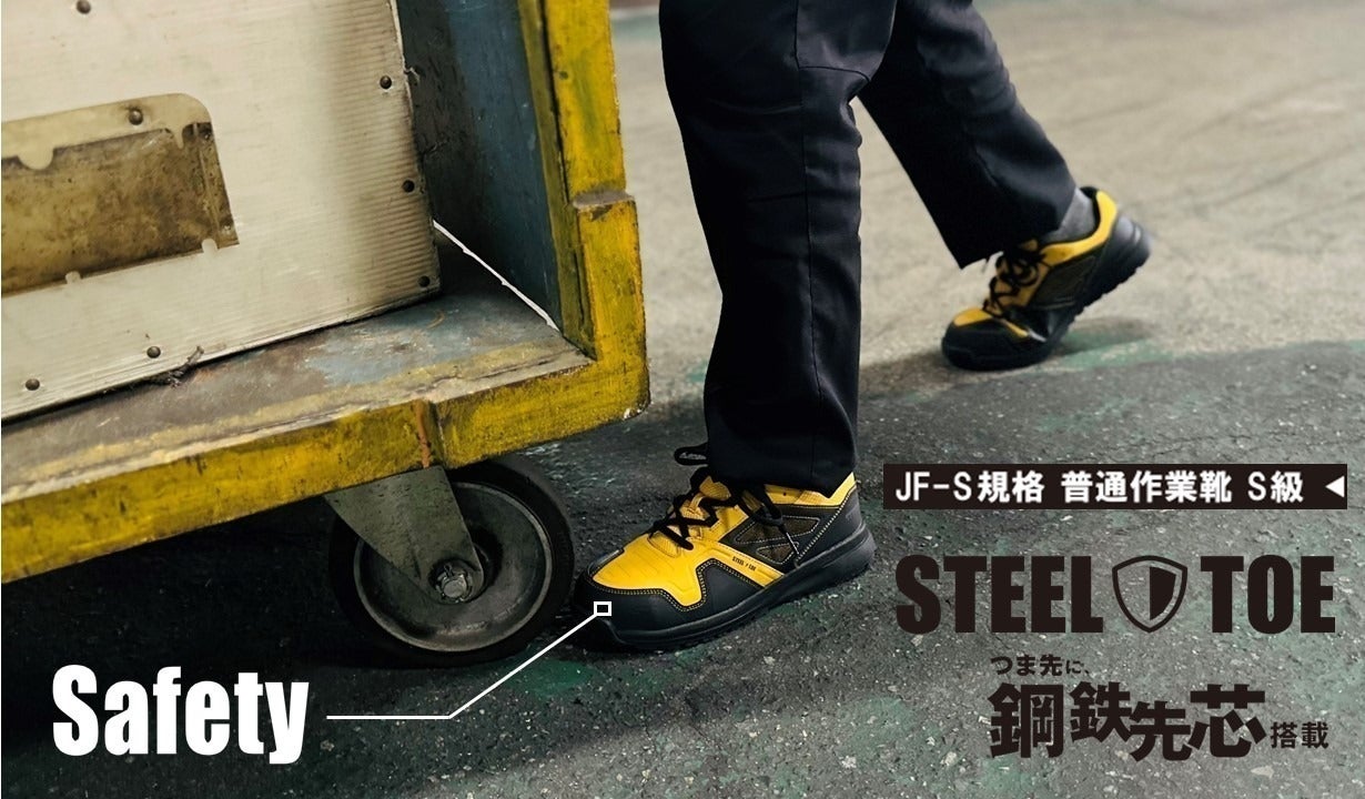 落下物などの衝撃からつま先をしっかりガードします。(JF-S規格 普通作業靴S級)