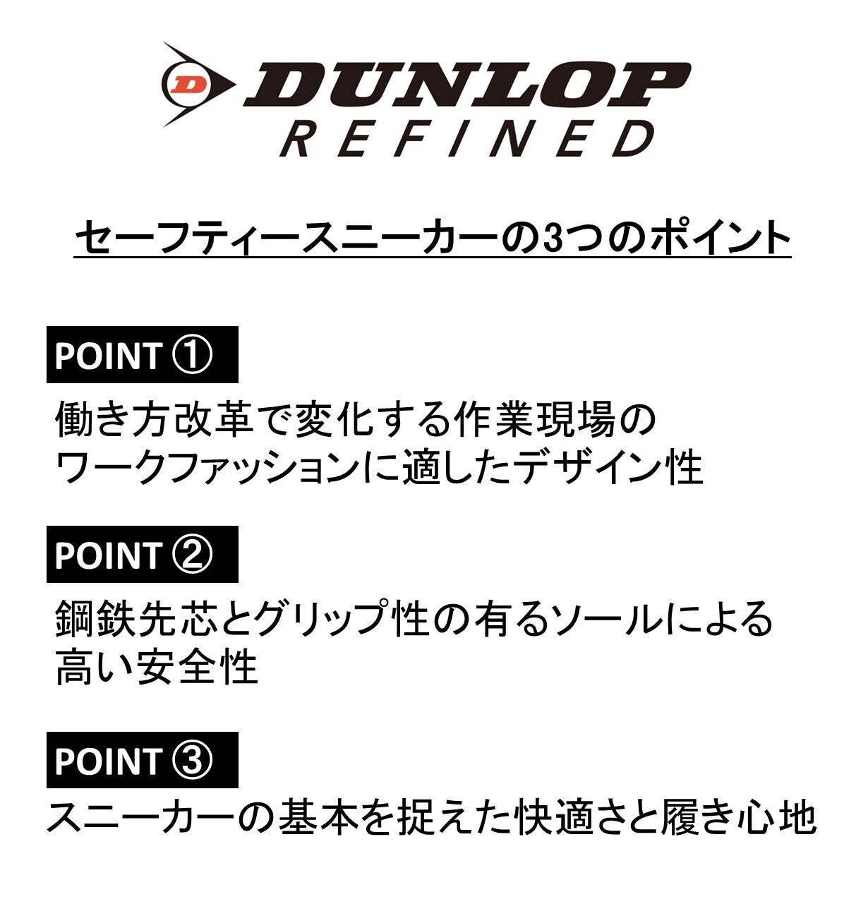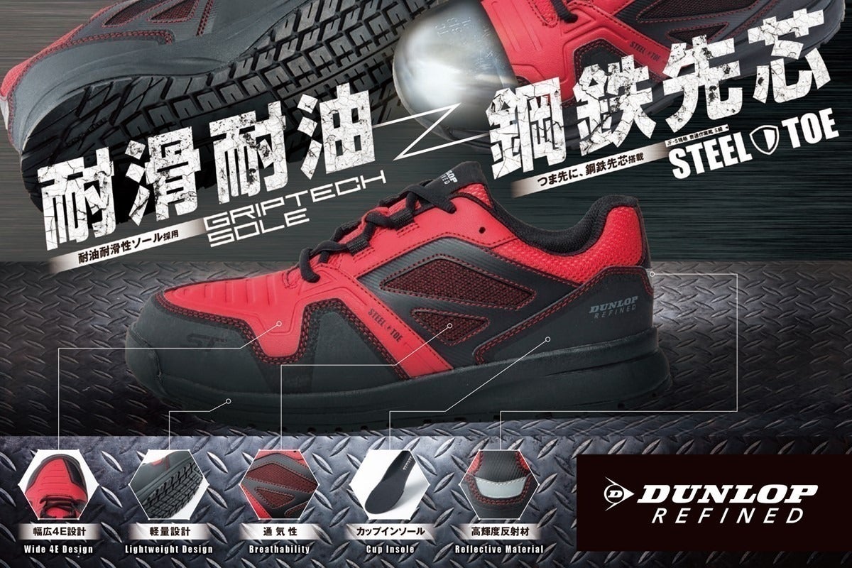 ダンロップリファインドのセーフティースニーカーのデザインと機能性、そして安全性を是非お試しください。