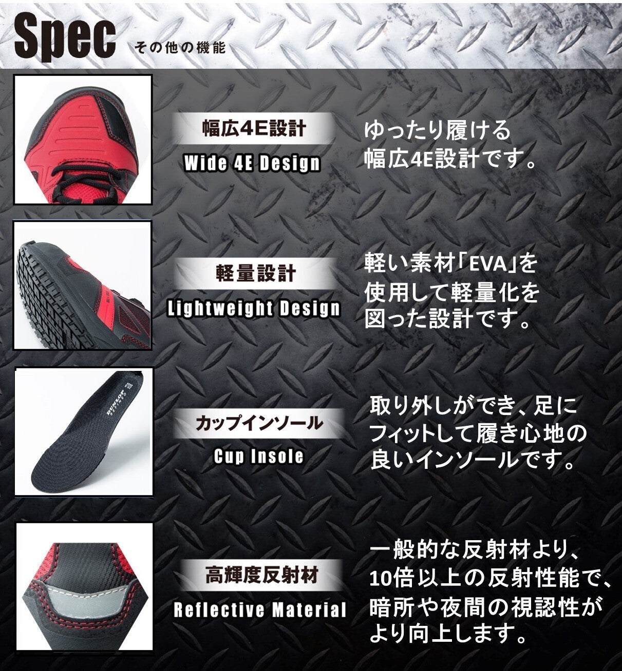 ダンロップリファインドのセーフティースニーカーには、その他にもスニーカーとしての基本をしっかりと捉えた快適さと履き心地をサポートする機能が搭載されています。