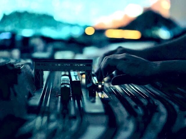 "でんしゃむずかしい"と愚痴をこぼしながら、毎日レイアウト制作で変わる手の色とお客様との日々