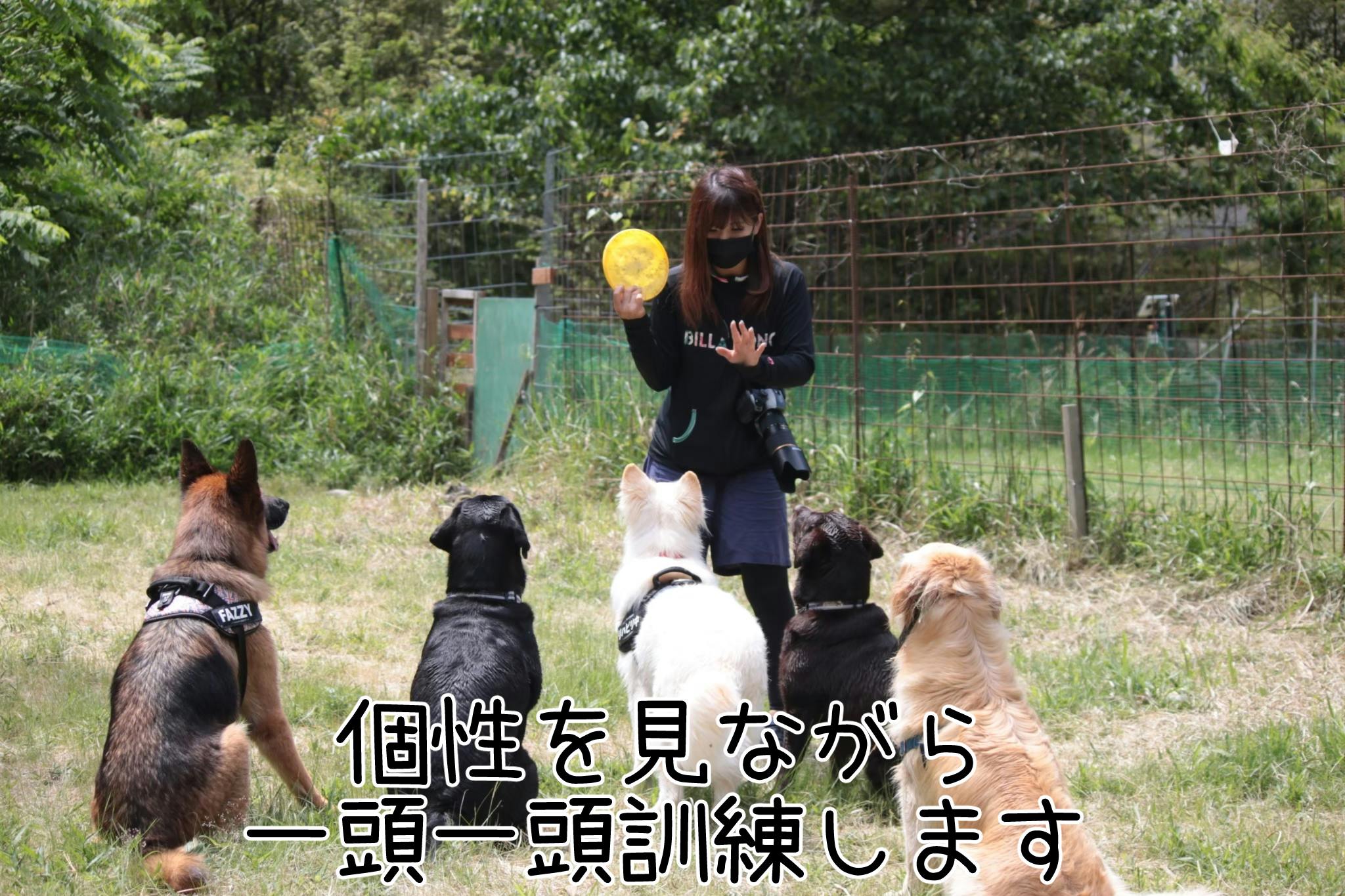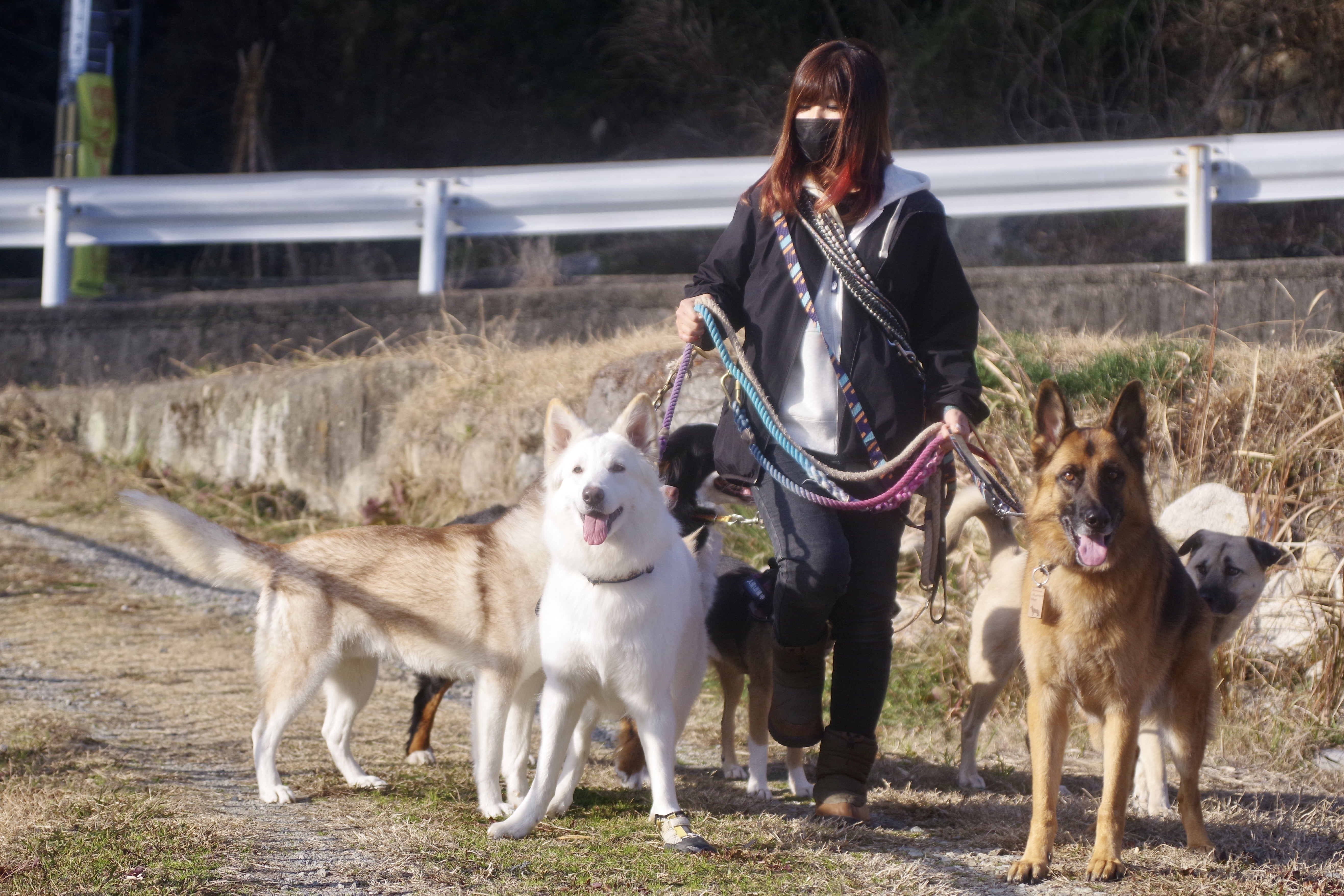 ドッグランを使い呼び戻しの訓練や、人と共存していく術を楽しく教えながら生活していきます。