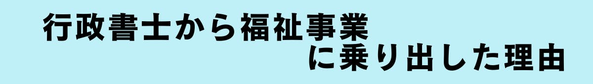 行政書士としての私の仕事は、企業法務がほとんどでした。そのため、少し前までは、「福祉分野は自分の専門外だし、得意な方が取り組めばいい」と考え、自分自身が新たに法人まで立ち上げて挑戦するとは夢にも思いませんでした。