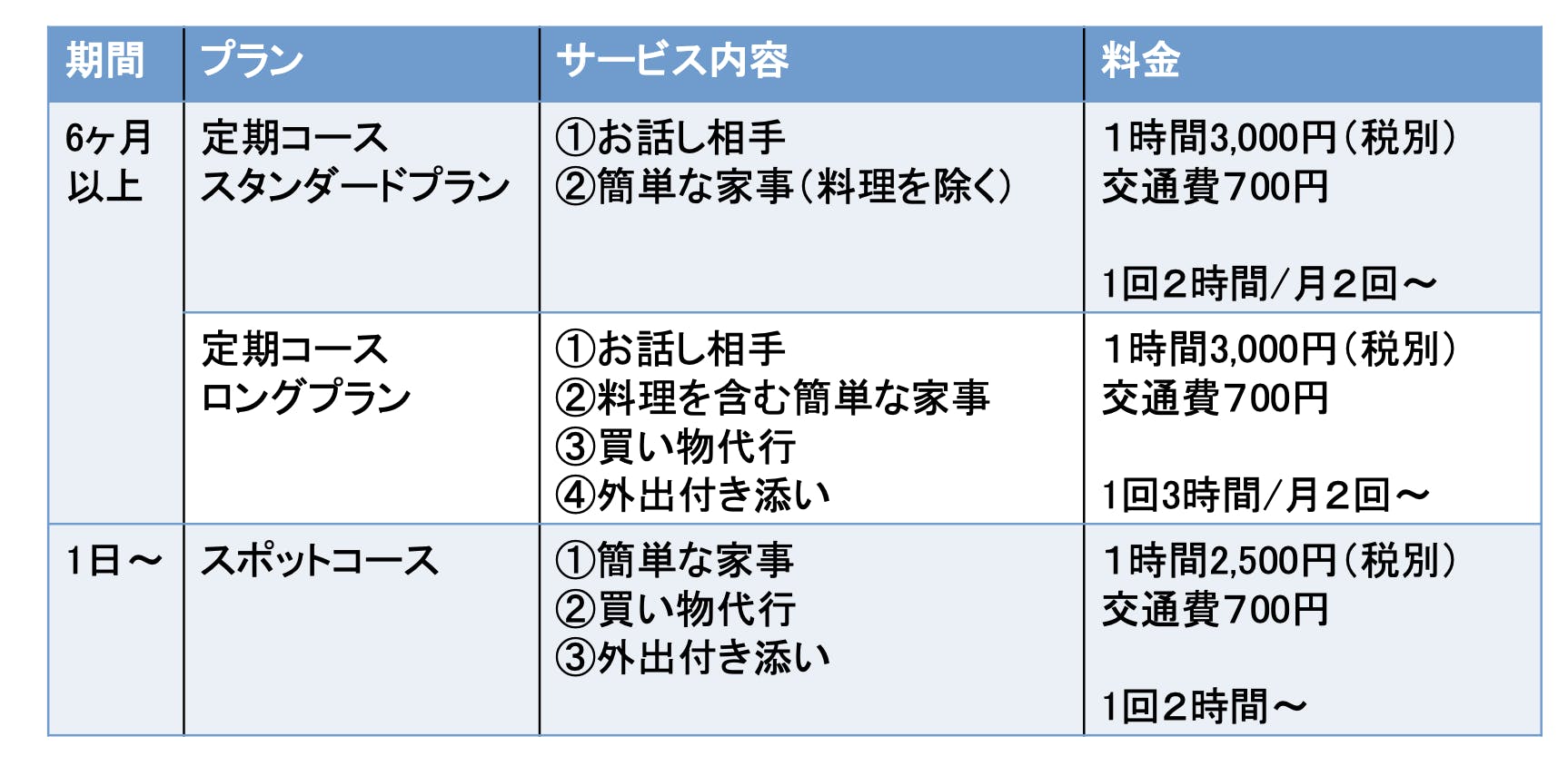ここでは、現在予定している「シニアサポート」の具体的なサービス内容についてご紹介します。