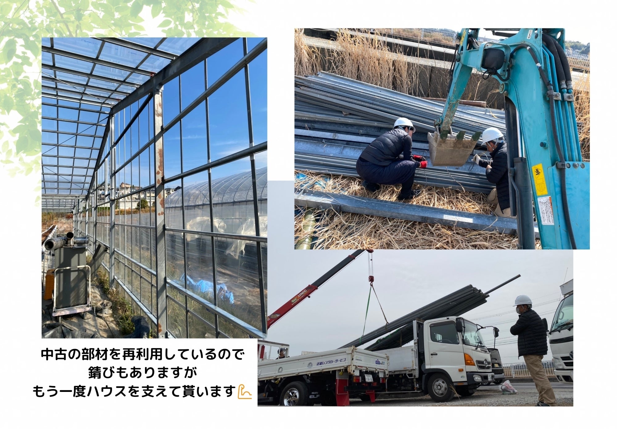 なるべく費用を抑えるため、またSDGsの観点からハウスの鉄骨部分は中古品を使用する事にし、オークションで約280万円で競り落としました。