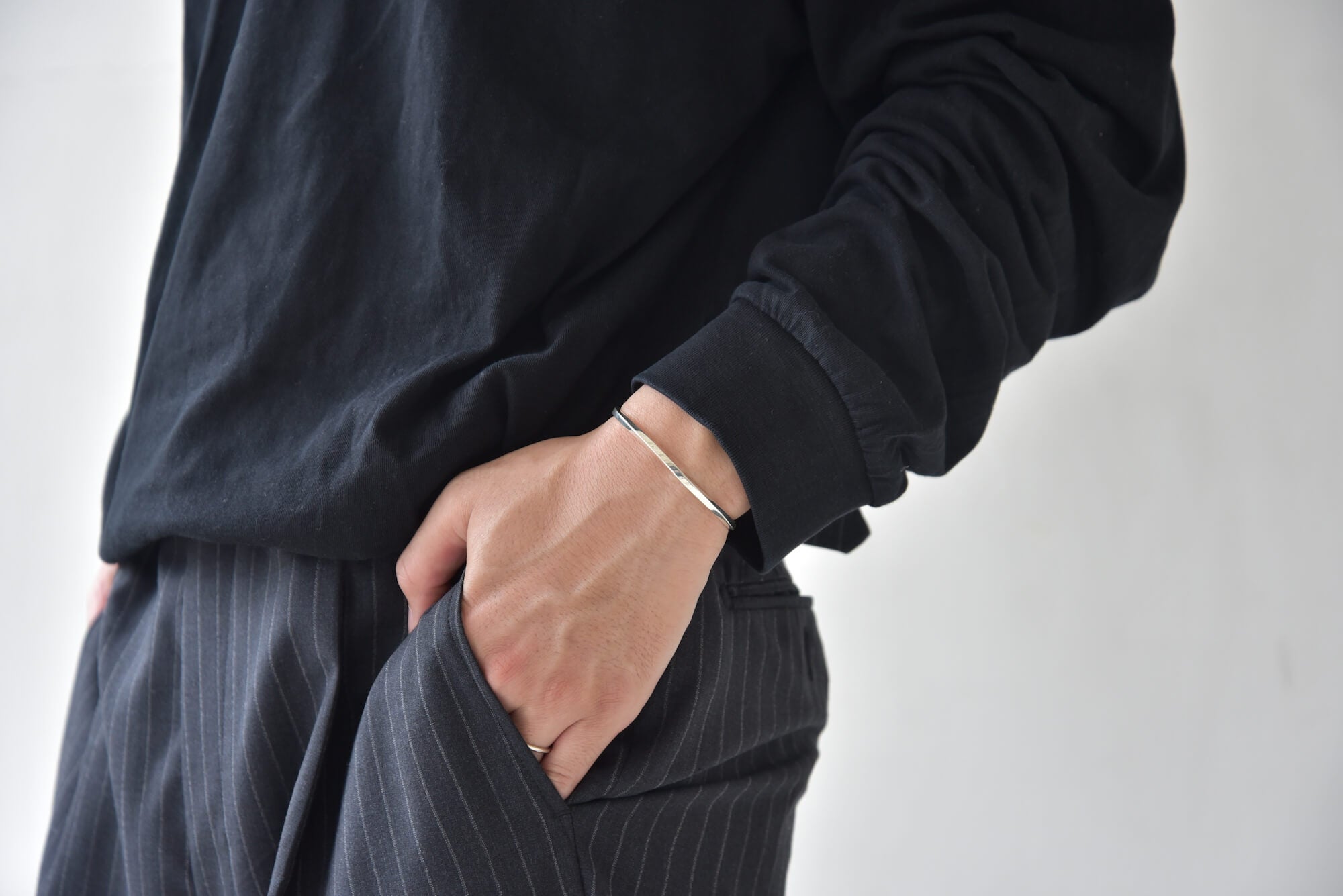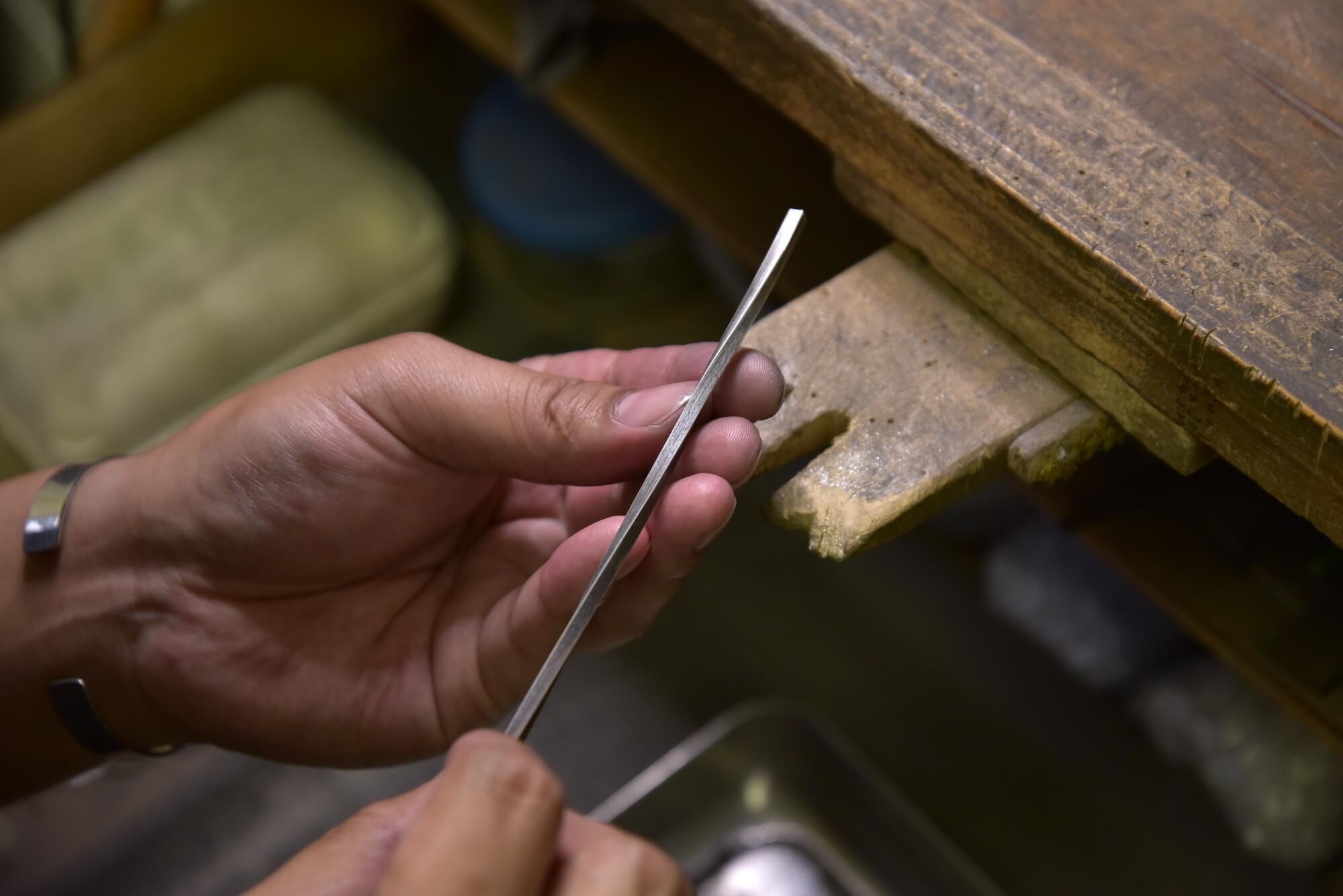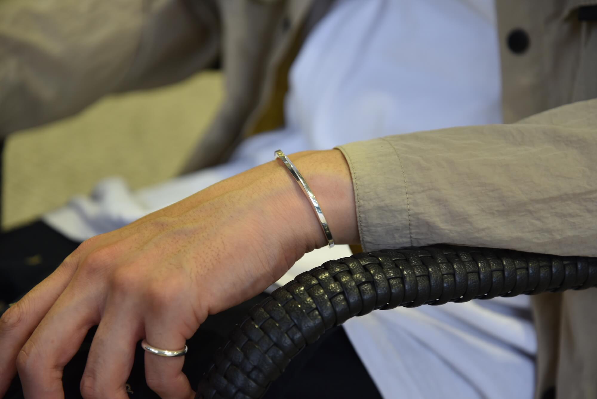 装飾を出来るだけ省いた分、仕上がりの繊細さがとても重要になります。数多くのハンドメイドバングルは世の中にたくさんありますが、彫金技術の基礎をどれだけ美しく仕上げれるかが大事なポイントになりました。