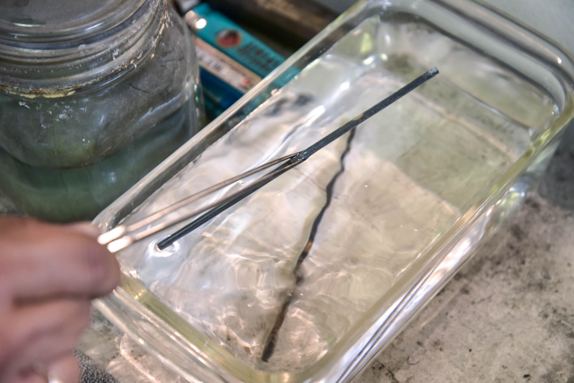 この「捻り」と「叩き」によって焼き鈍しによって柔くなった金属繊維を強く、硬く鍛え戻していきます。