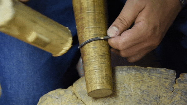 捻り工程の次はバングル型に叩いて成形していきます。