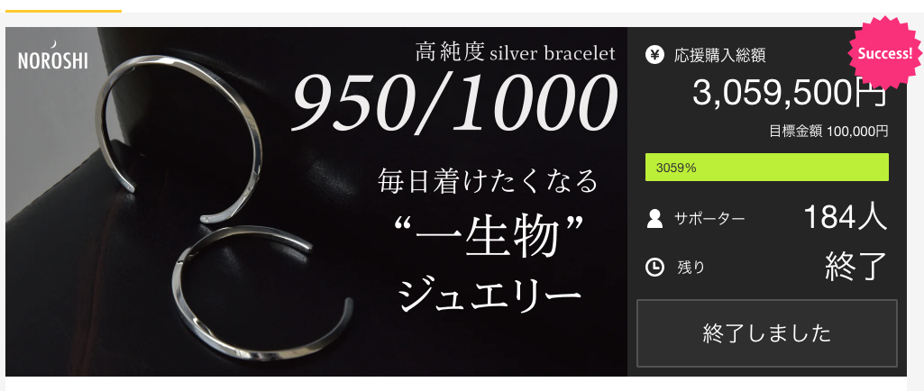 2023年7月に実施した初回のプロジェクトでは達成率が3059%、184名のサポーターの支持をいただき成功することができました。