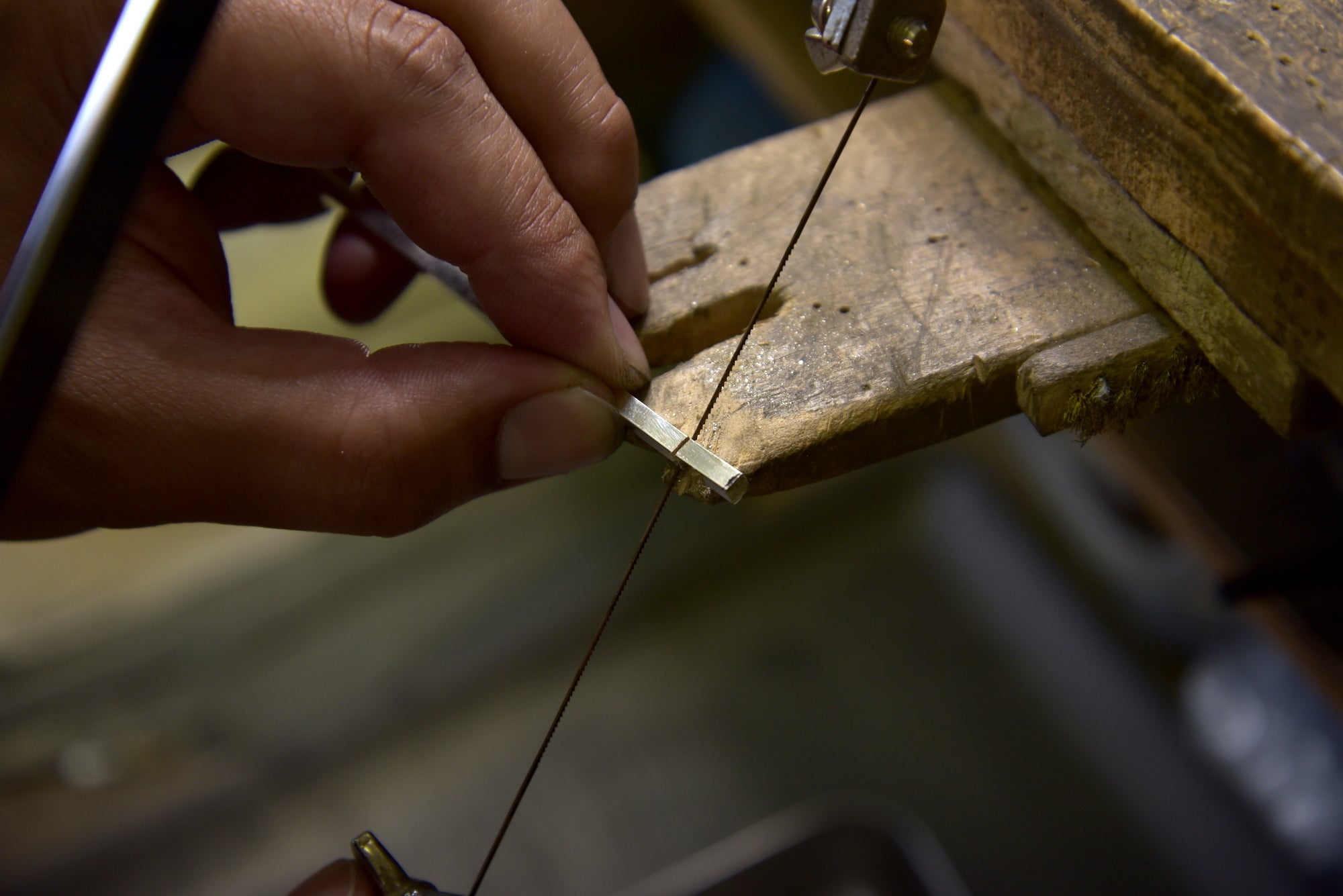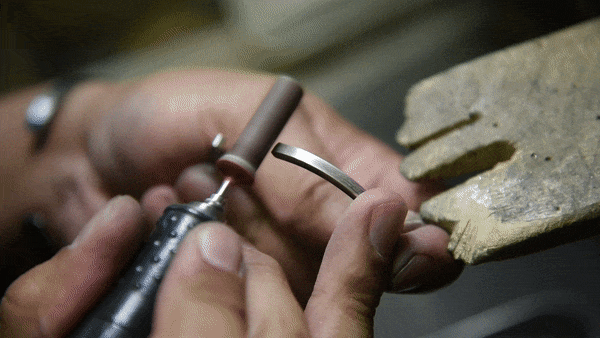 型を使った「鋳造製」の製品とは違ってこのちょっとした「クセ」が手仕事でつくるジュエリーの良さとなります。