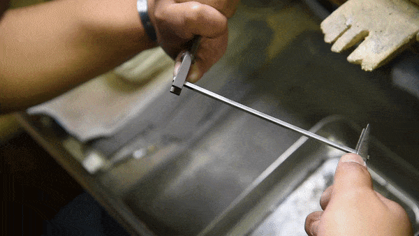 対して今回の「鍛造」は鍛治の製法として伝統的に行われてきた製法で、叩いたり、引き伸ばしたりする事で成形する製法です。金属を鍛えることになるのでより丈夫に仕上がるのが特徴です。