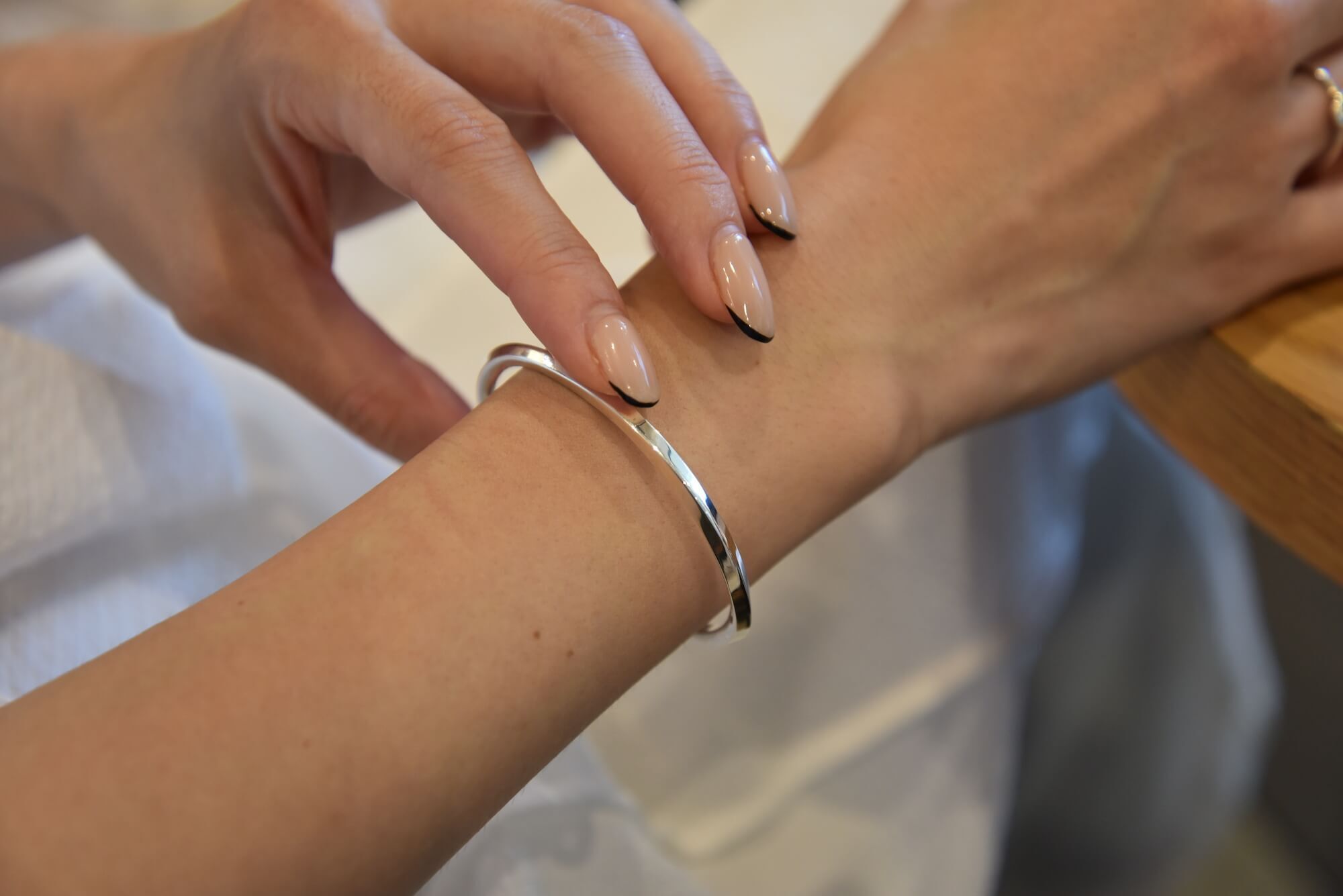 腕にさりげなく華やかさを添えるバングル