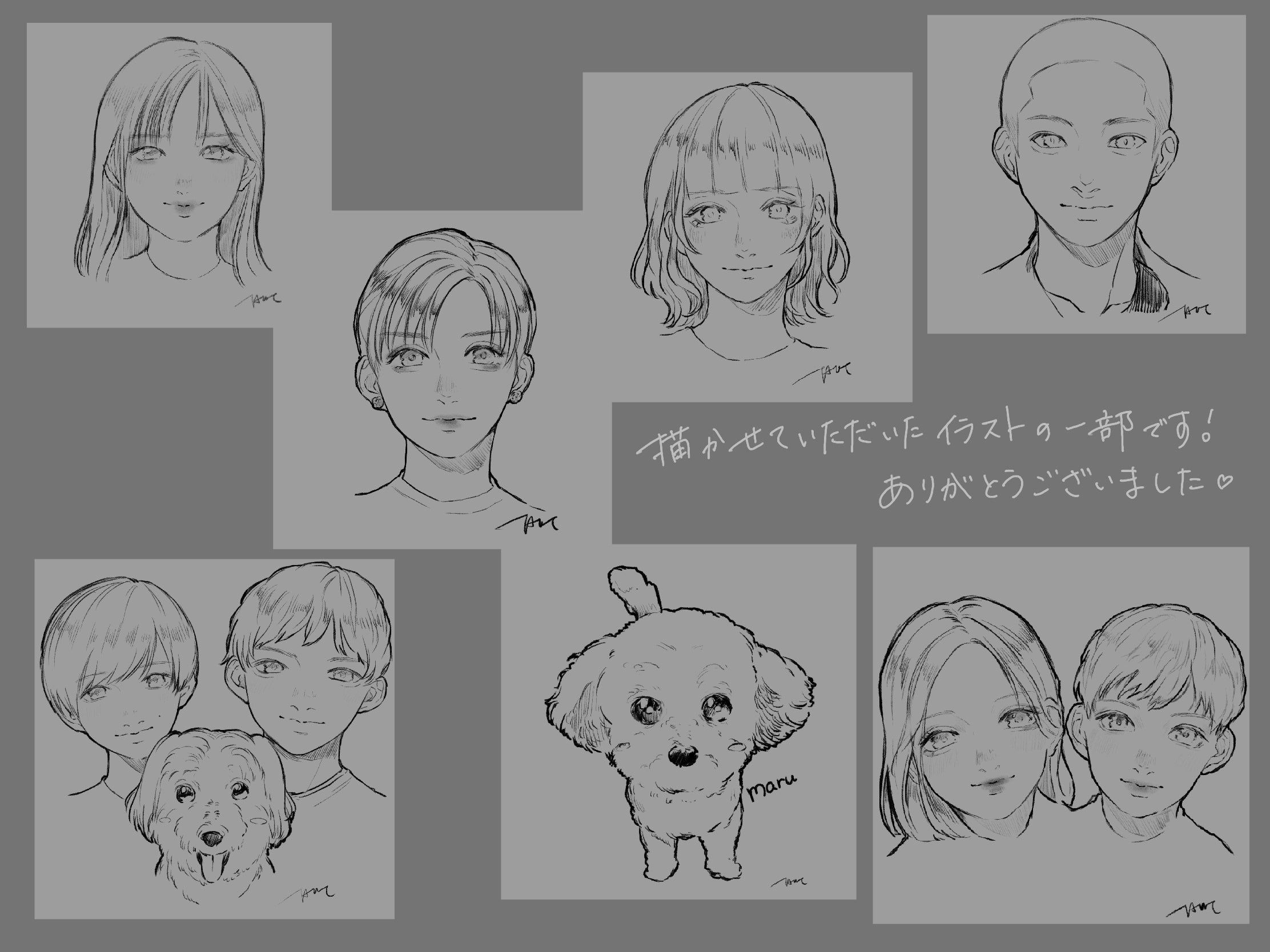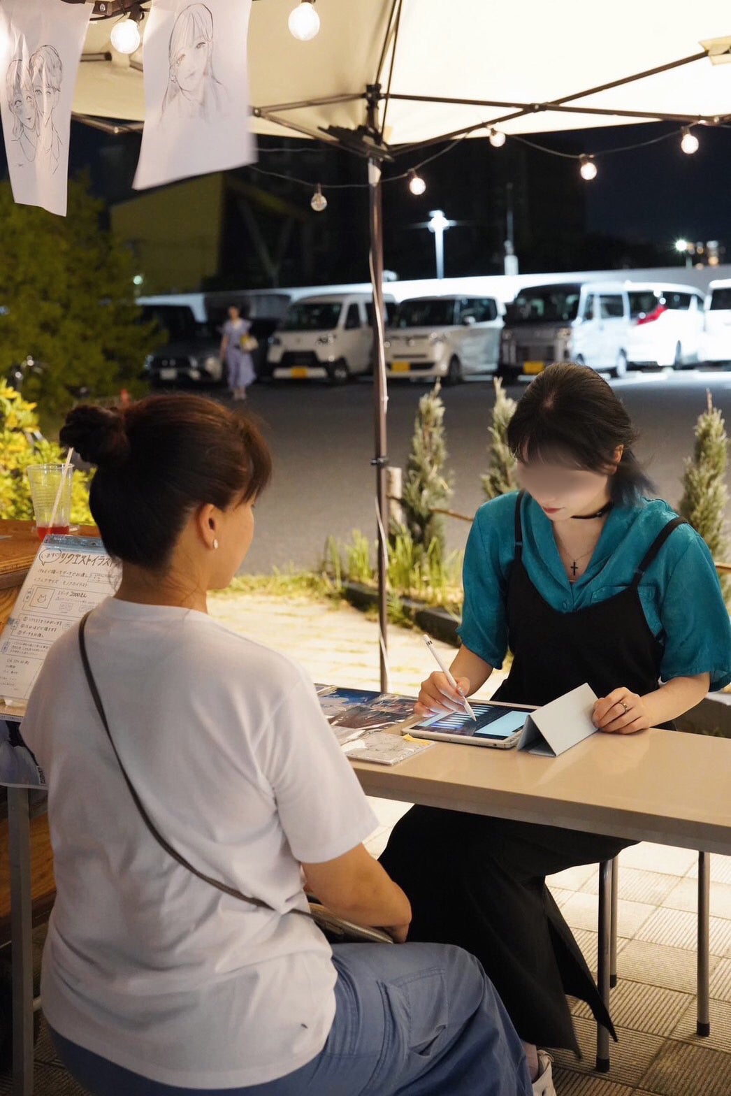 その場でリクエストしていただいたものを15分程で描かせていただくプチイベントも同時に行いました。たくさんの方が興味を持ってくださり、似顔絵や可愛いペットのイラスト、また思い出や記念として依頼してくださいました♡
