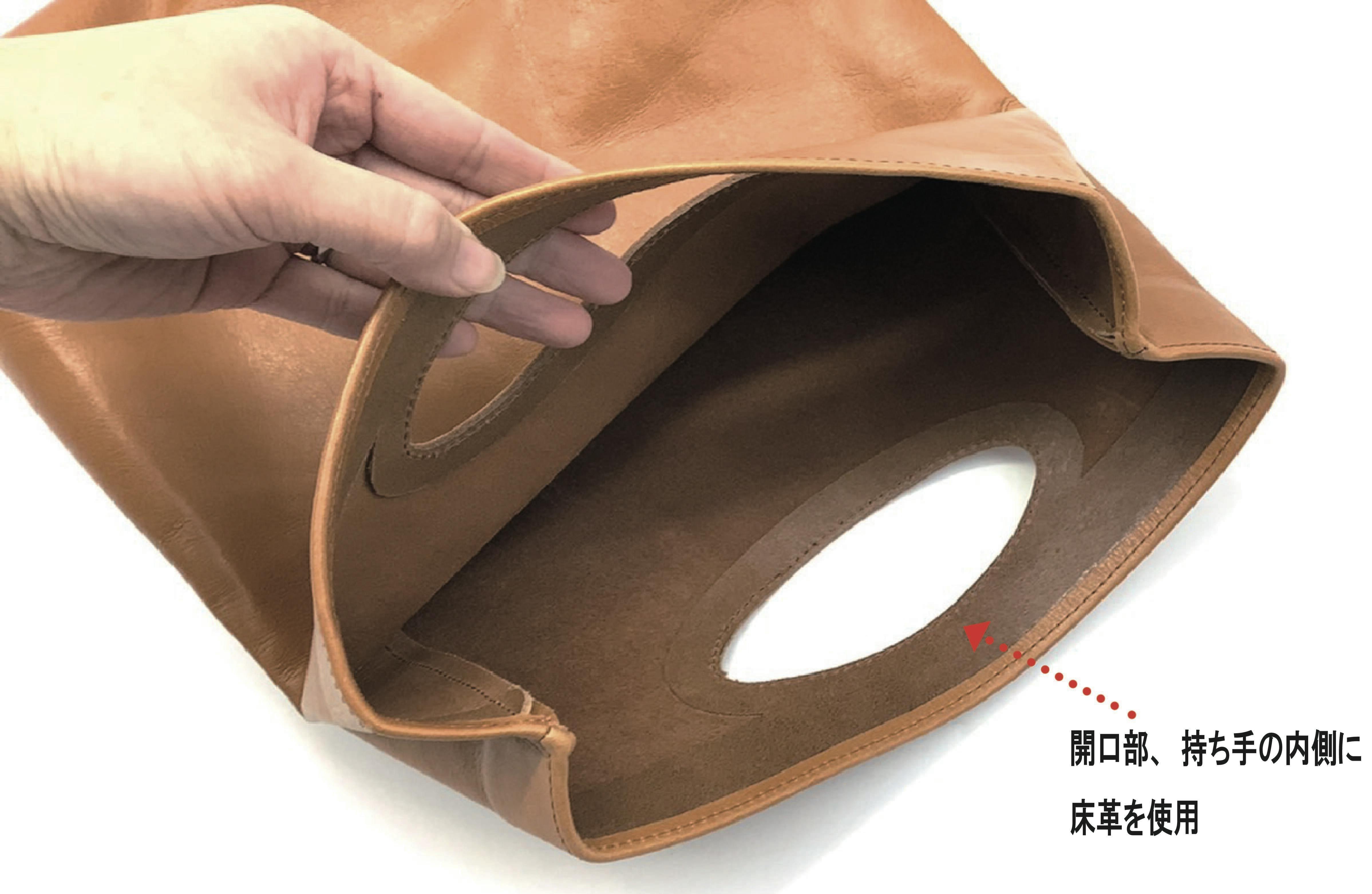 POINT②持ち手の補強には床革を使用。よりエコに!
