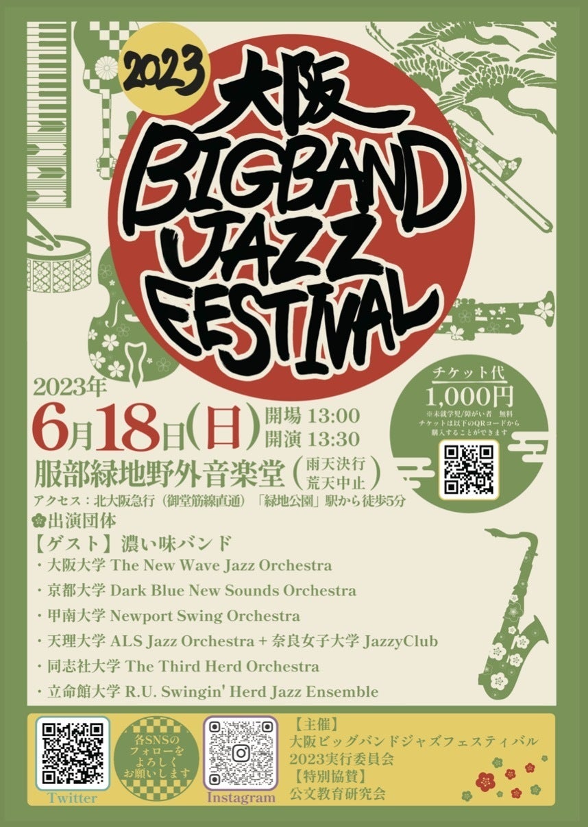 2023/06/24 11:376/18(日)に無事大阪ビッグバンドジャズフェスティバル2023を終えることができました。4年ぶりの開催で不安な部分もありましたが、天気にも恵まれ多くの方にご来場頂き大盛況に終えることができました。ご来場頂いた皆さま本当にありがとうございました。またクラウドファンディングにてご支援頂いた皆さまも本当にありがとうございました。クラウドファンディングは明日まで引き続き受付させて頂いております。来年も開催できるようこれからまた動いていきますので、引き続きご支援の程、何卒よろしくお願い致します!! もっと見る