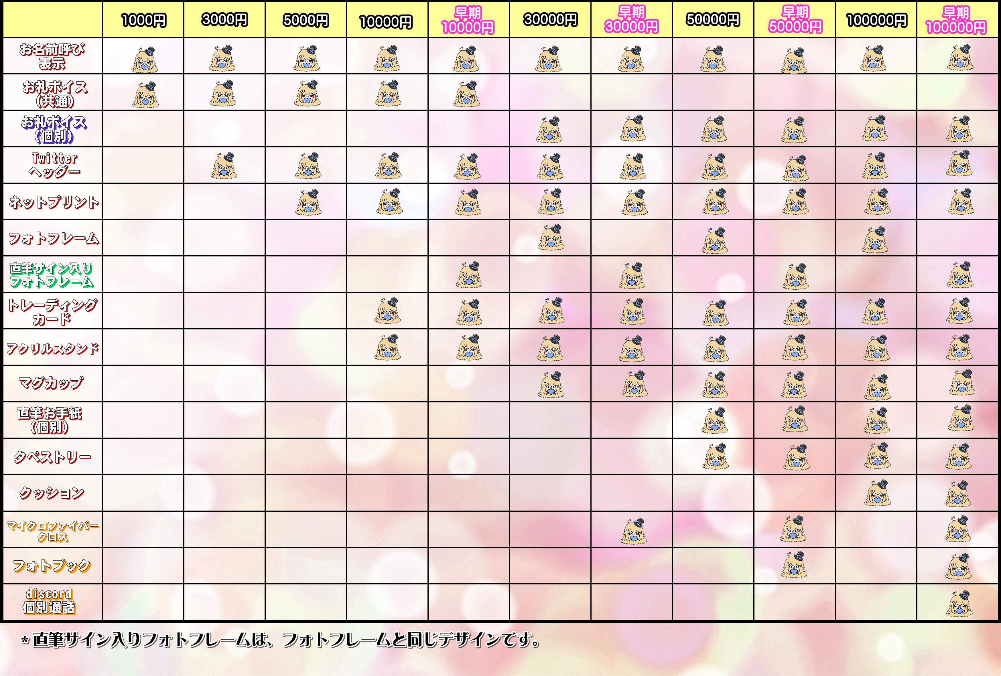 *初配信内でお名前呼び、画面に表示 *お礼ボイス(共通)