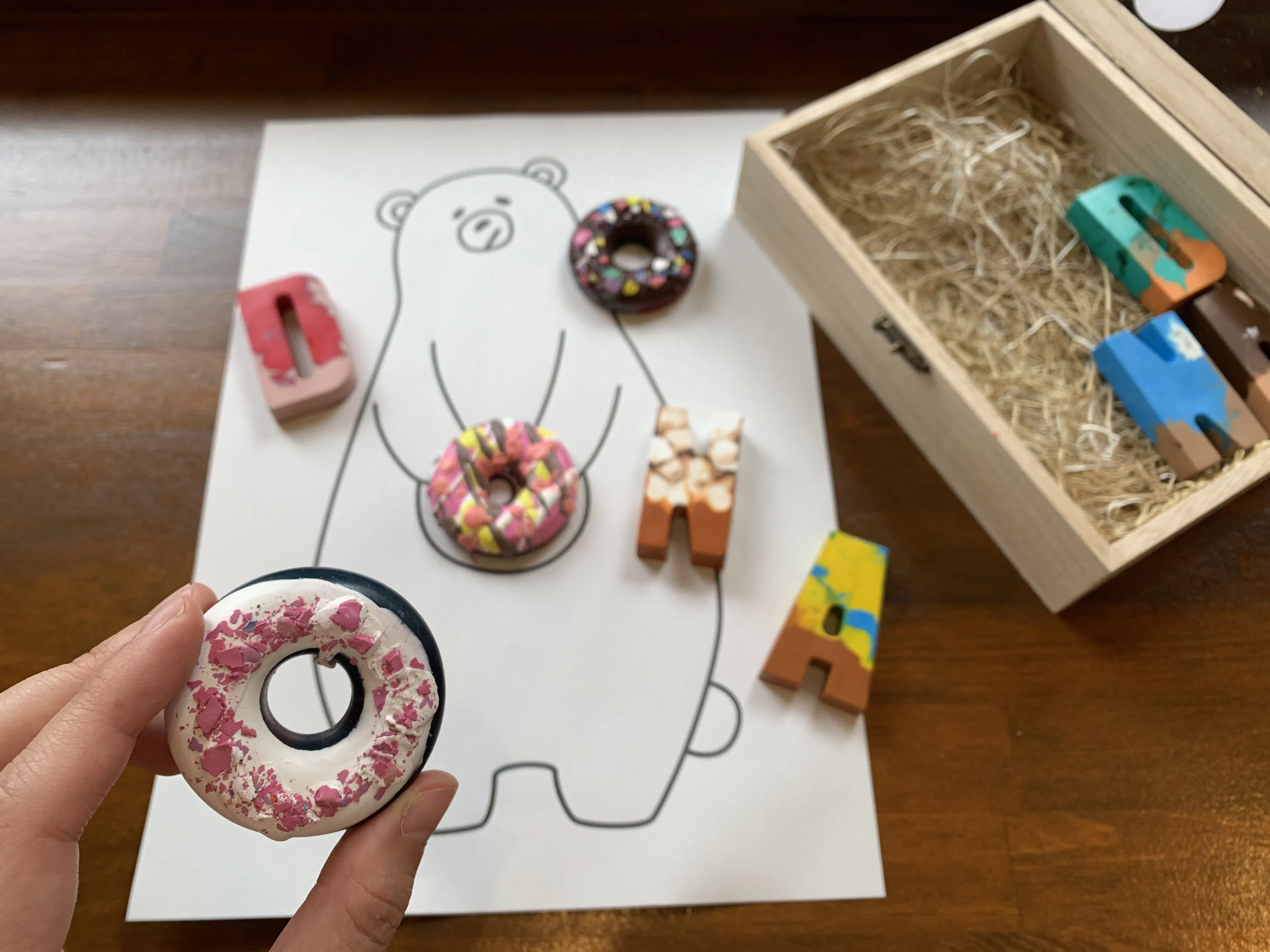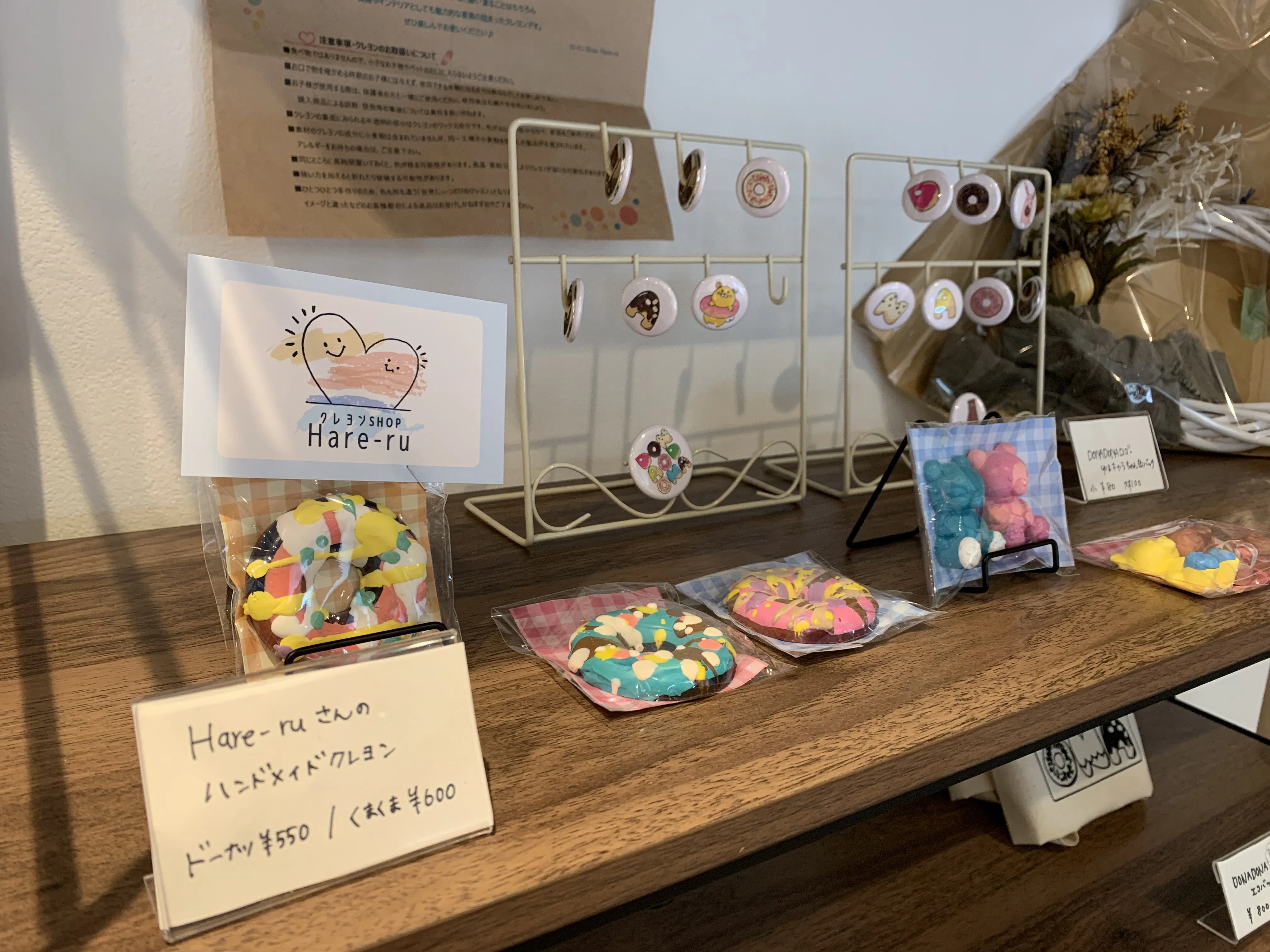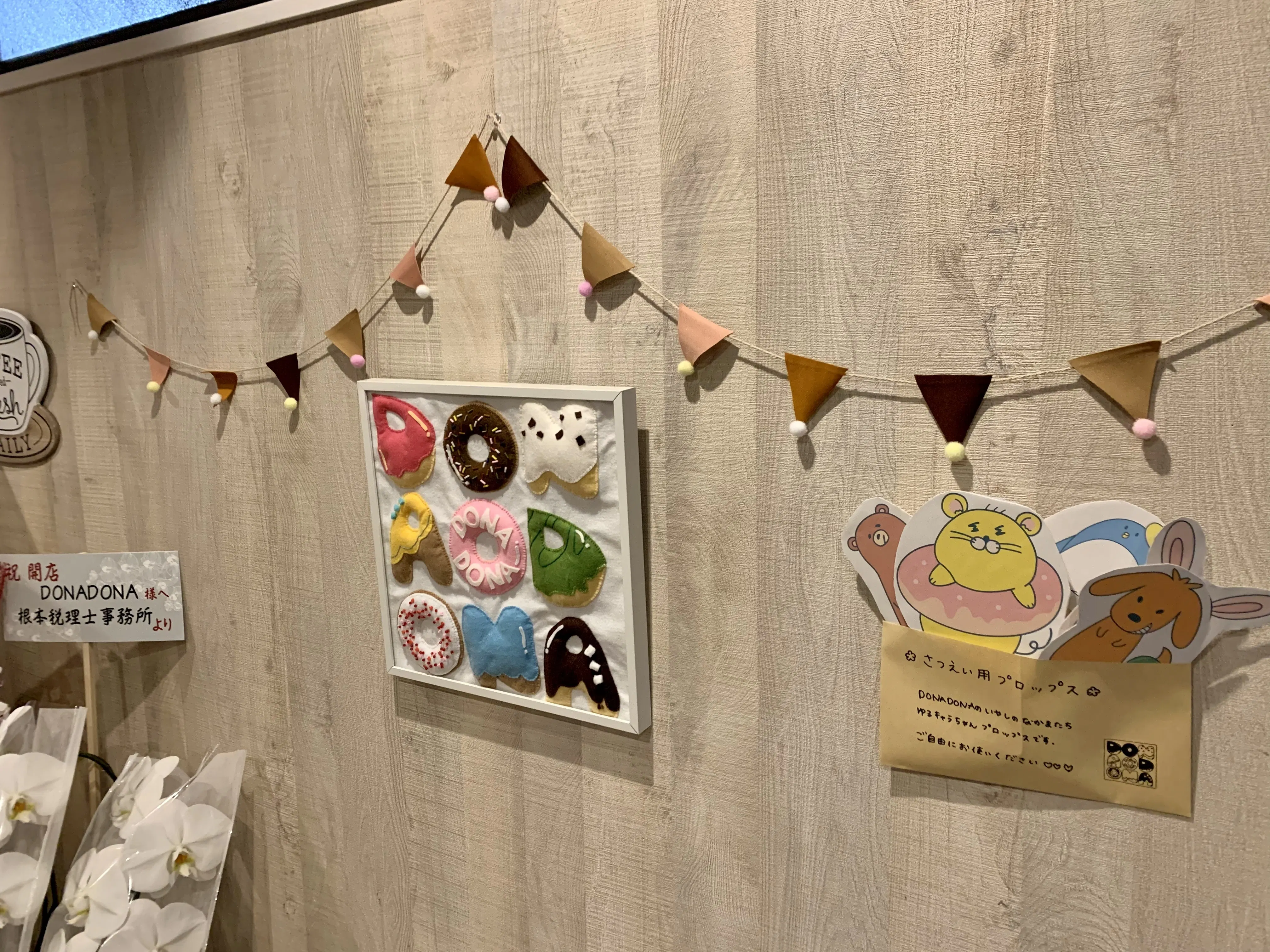 お子様向けのぬりえや、アメリカを思い起こさせるウォールデコを飾っていたり。リース職人さんやクレヨン作家さんとコラボして、DONADONAをイメージしたリースやロゴクレヨンを制作していただいたり。