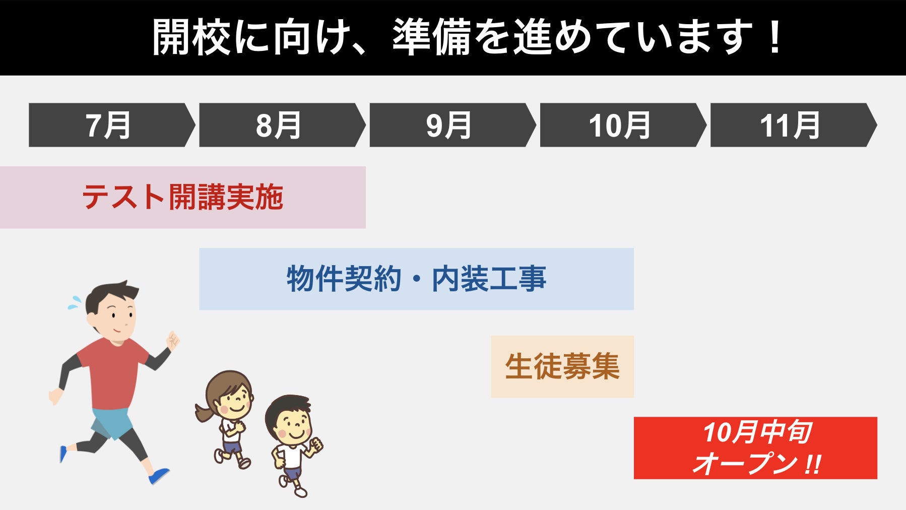 下記のスケジュールで、「ジロジム」開校に向けた準備を進めております。