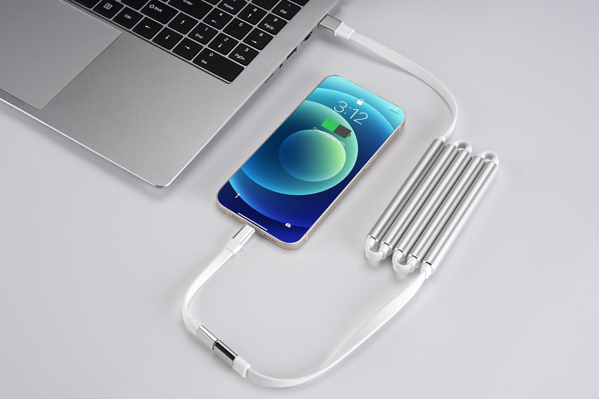 これらのお悩みを解決するために、4in1磁気式折り畳みケーブル「IVYCable」が開発されました。