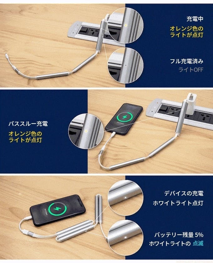 「IVYCable」の電力レベルを一目でわかるように、バッテリーの状態を示すインジケーターライトを搭載しています。