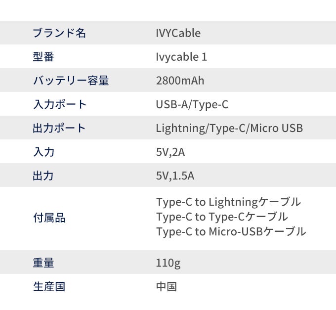 また、「IVYCable」は非常にコンパクトなサイズで、ポケットやバッグの中に簡単に収納できます。この小型デザインは、旅行者や外出先での使用に適しています。