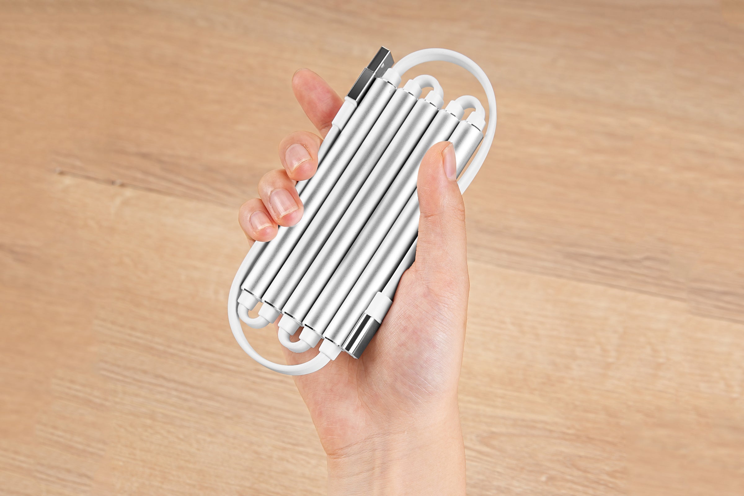 「IVYCable」は、磁気セクションが結合することで、簡単に整然としたコンパクトな形状を作り出すことができます。各アクションを近づけるだけで自動的に折りたたまれ、長いケーブルを絡まることなく、デスク上の散らかりを解消する完璧な仕組みです。