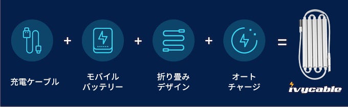 「IVYCable」は磁気式の接続部分を持ち、折り畳むことができるデザインのケーブルで、接続部分が絡まることもなく、場所を取らずスッキリ収納できます。