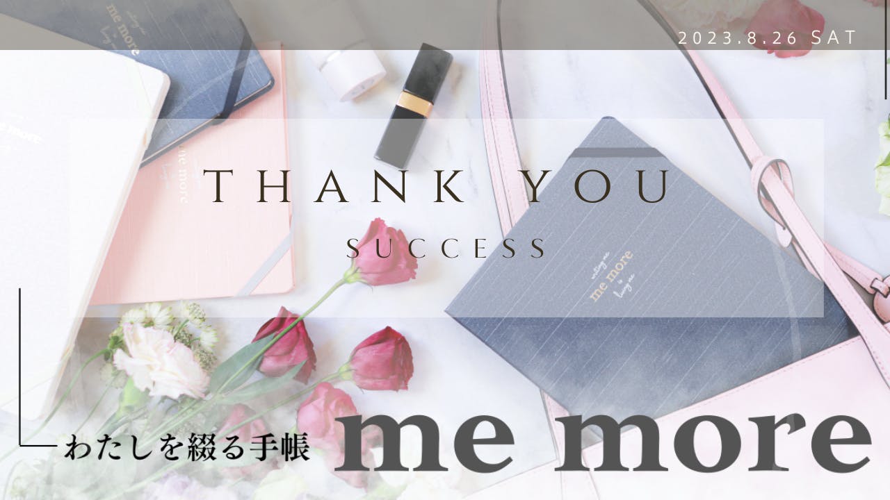 ご支援いただきましたみなさま♡ありがとうございます。この度は『人生の背景が変わり、わたしが輝きだす!”わたしを綴る”手帳me more』へのお心あるご支援を賜りまして、本当にありがとうございます。me more手帳プロデューサー松本真季(まみ)です。お礼と共に、まずは今回のプロジェクトがわたしどもの不手際により、告知しておりました開始日時2023年8月27日0時より早まってしまいましたことを、深くお詫び申し上げます。本当に申し訳ございませんでした。万が一、予定より早く公開されたことによる不都合などがございましたら、コメント欄もしくはmemore.827oficial@gmail.com までお手数ですがご連絡をお願い申し上げます。このような事態になったにもかかわらず、皆様のおかげで、開始後8時間でファーストゴールを達成!!そして、開始後24時間で200%を達成することができました。皆様に感謝すると共に、さらにme moreをより多くの方に広げていくためのセカンドステージを目指しておりますので、また明日発表させていただきます。このたびは、本当にありがとうございました。me more手帳プロデューサー 松本真季