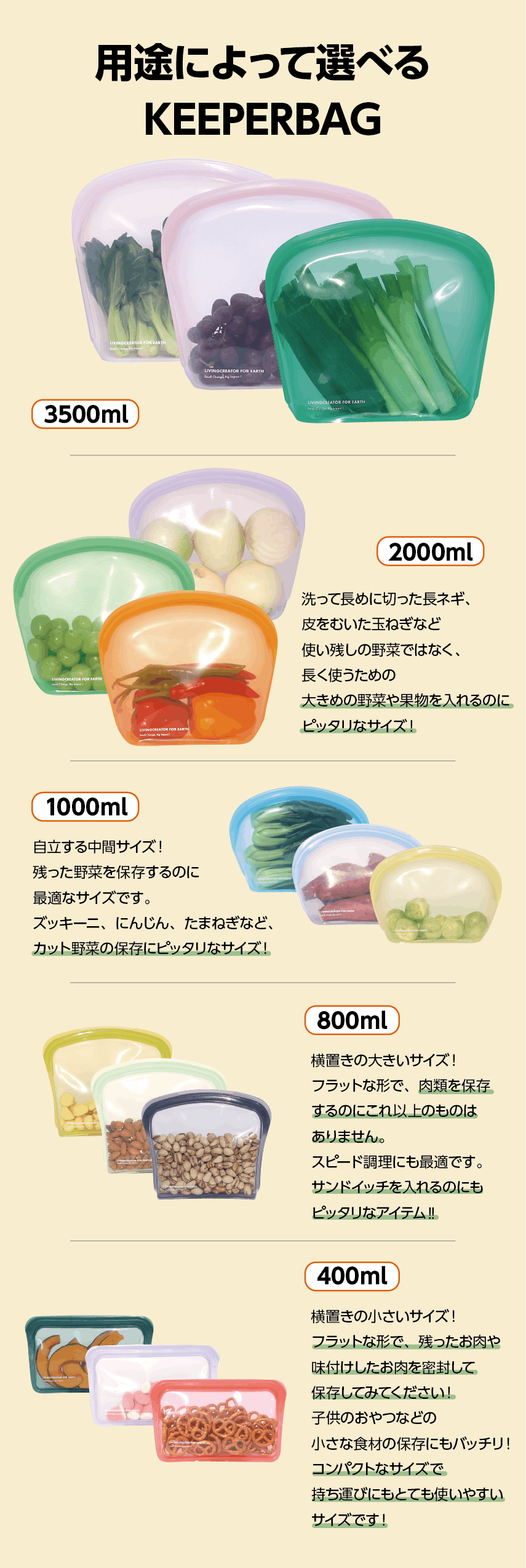これからはKEEPERBAGに食材を長~~く新鮮なまま保存してください!