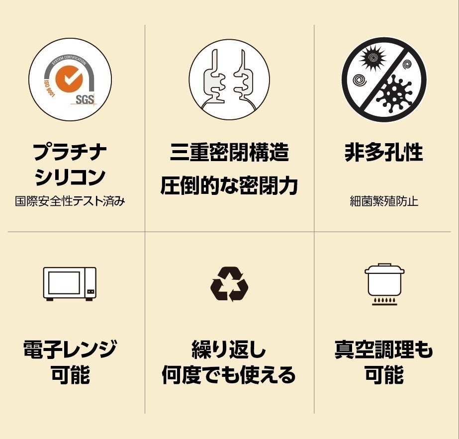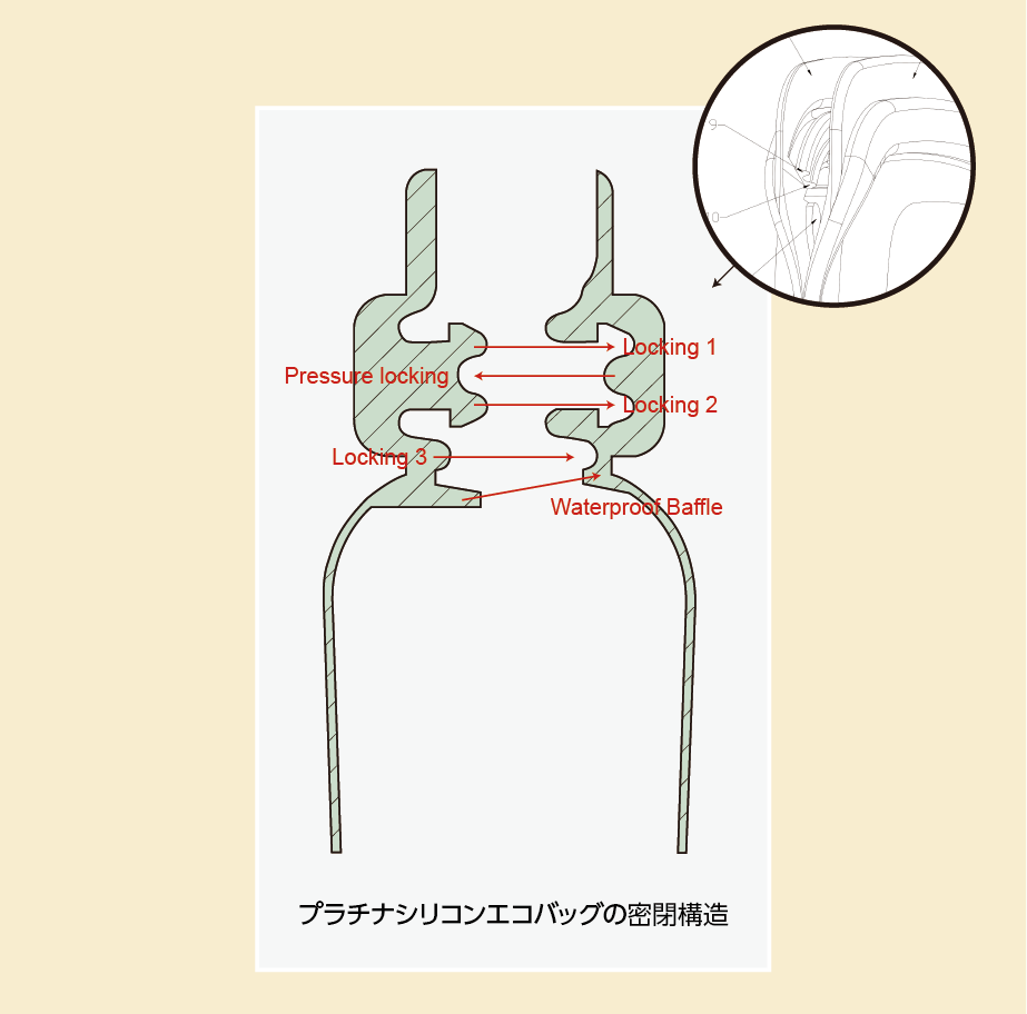 シリコン性のバッグならではの三重密閉構造の技術力!
