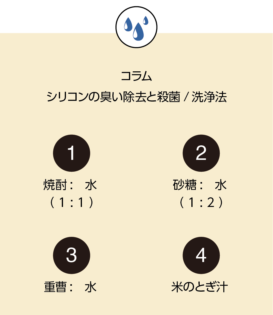 4つの中から一つを選んで混合液を作って洗浄した後、必ず日当たりの良い場所で乾かしてください。