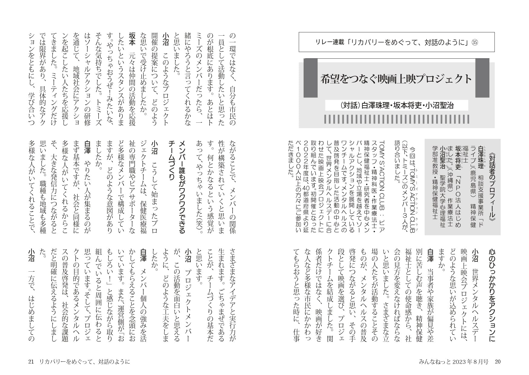 メンタルヘルスに貢献したい当事者、支援者、専門家などの有志メンバーによる任意団体「トミーズアクションクラブ」がプロジェクトチームを立ち上げ、2度目の映画上映会プロジェクトを企画しました。