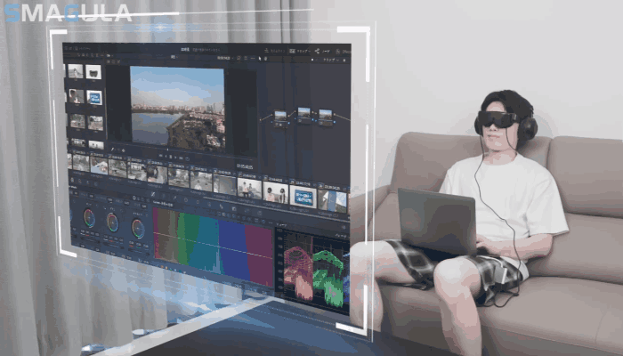 SMAGULAはFOV 68°の視野角で通常の映画館450インチ相当の巨大スクリーンをゴーグル内で体感できます。