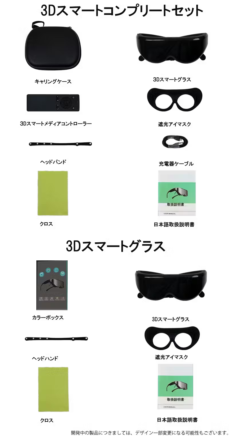 ご注意:グラス単体ご購入の場合は、スクリーンのサイズが調整できないため、ご視聴の動画により画面の四隅が多少欠ける可能性もございます。