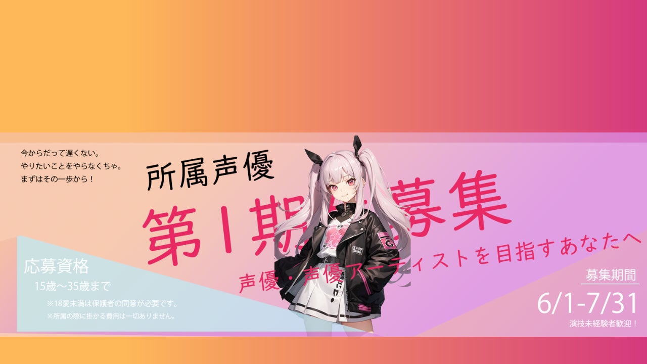 過去には有名声優やアーティスト輩出しており、今後はアイドルやVtuberなどの育成・マネージメントにも力を入れていきたいと思っております。