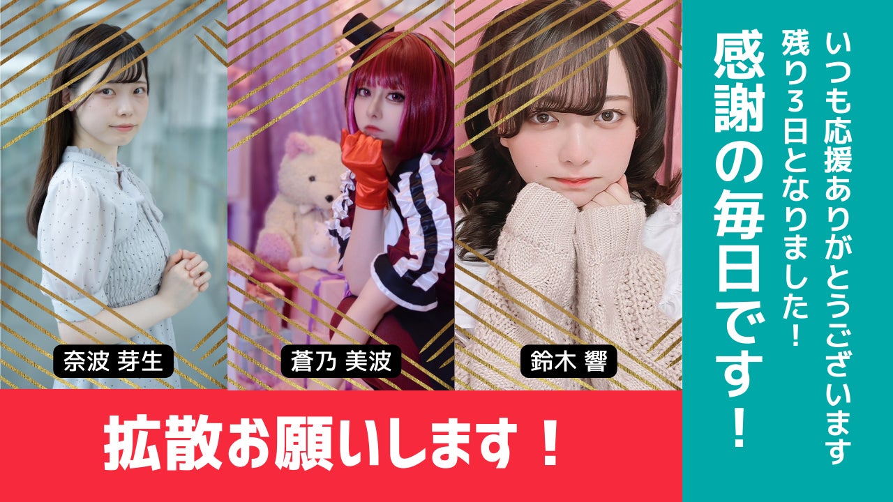 現在所属タレントは3名のみです。所属タレントをあと5名ほど増やし、10名程度にしたいと思っております。人数が揃いましたら、ライブなどを実施し、招待させていただきたいと思っています。金額が満たない場合はライブは実施せずにサインやグッズをお渡し出来ればと思います。一緒に事務所を立ち上げ、一緒にタレントを育てるという感覚でいてくれると幸いです。