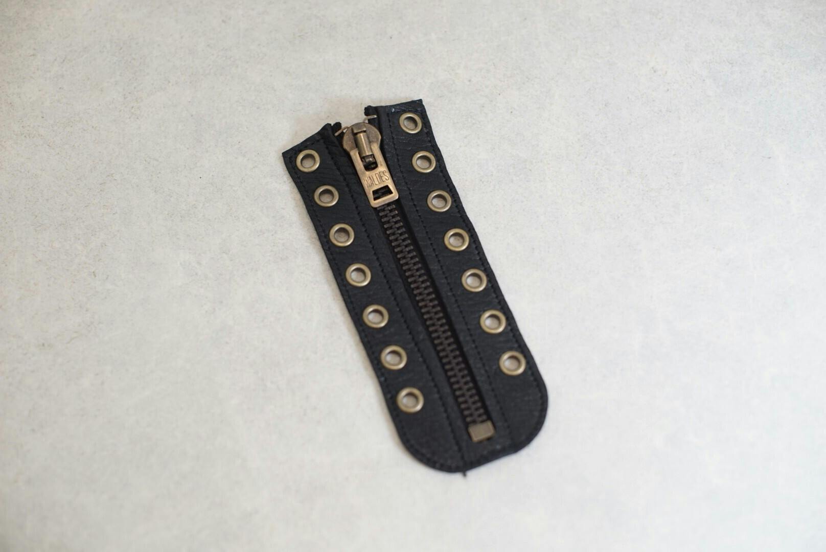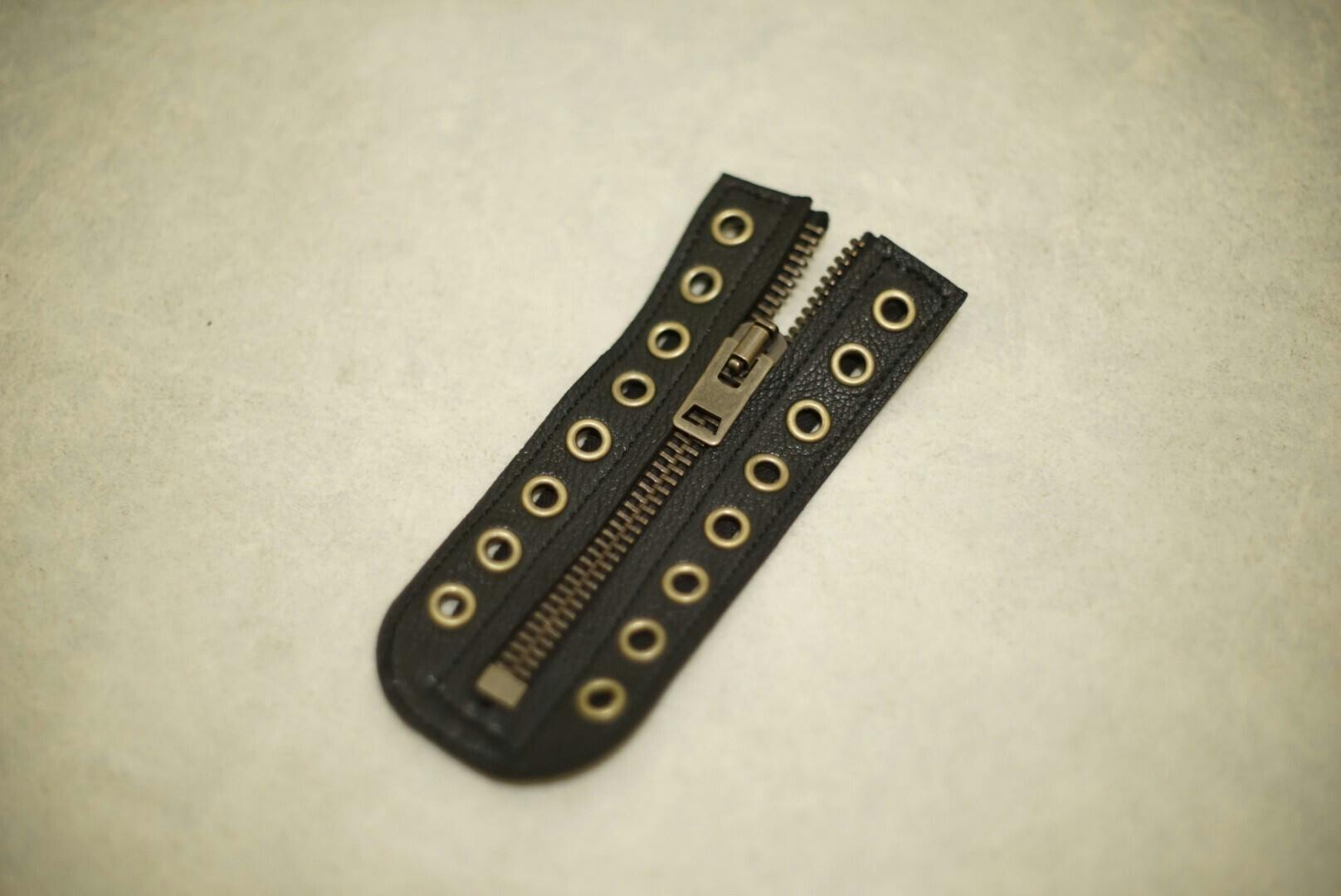 ARCANAレザーを使ったジャケットや衣服を作る際にも、必ずハギレは出てしまいます。その中で靴修理・カスタムの観点から、さらにハギレを活用して完成したのがこのジッパーユニットです。