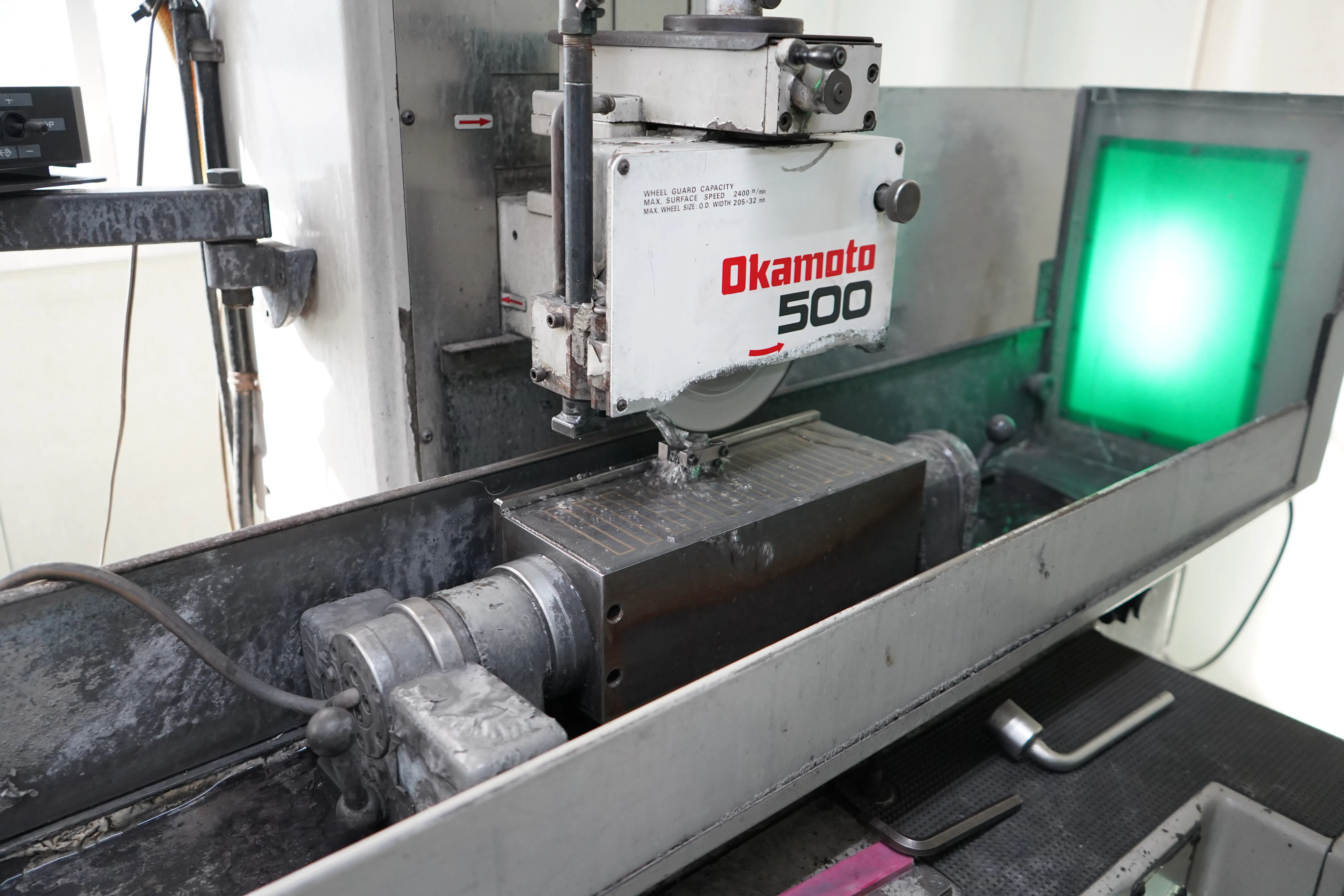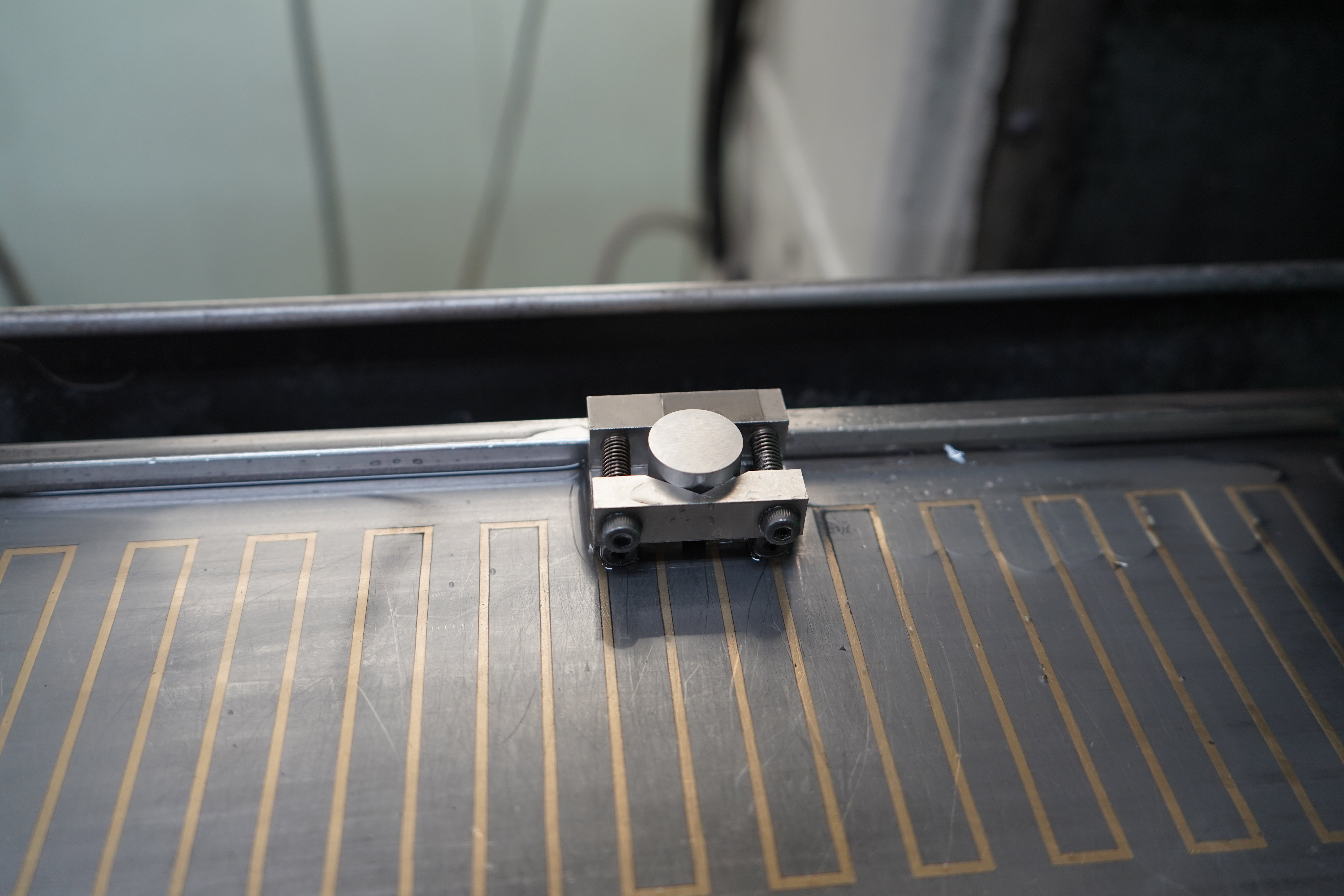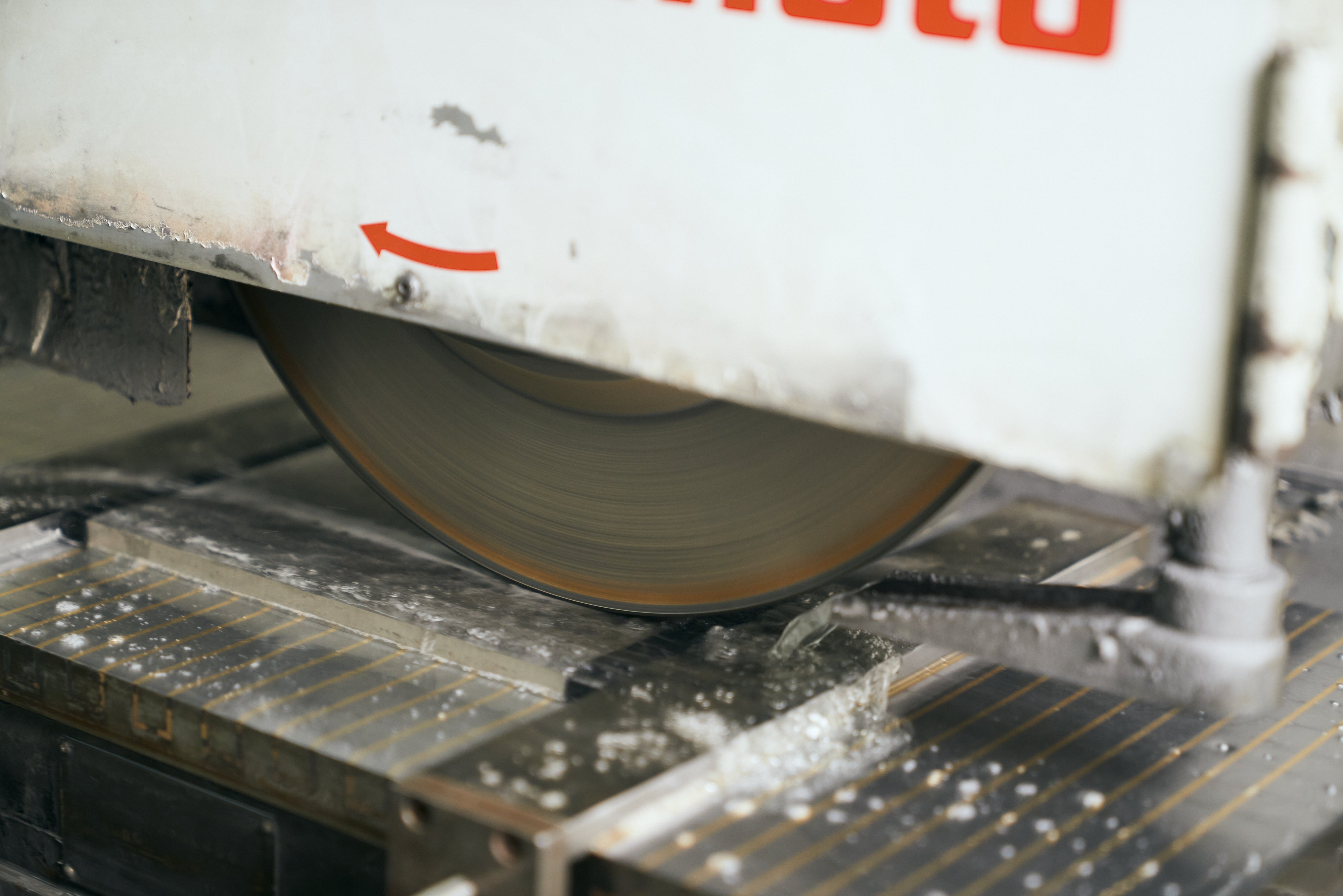 ⑥ 材料に高温の熱を加え材料の硬度を出し、研磨。厚み15.000(±0.001)mmにする