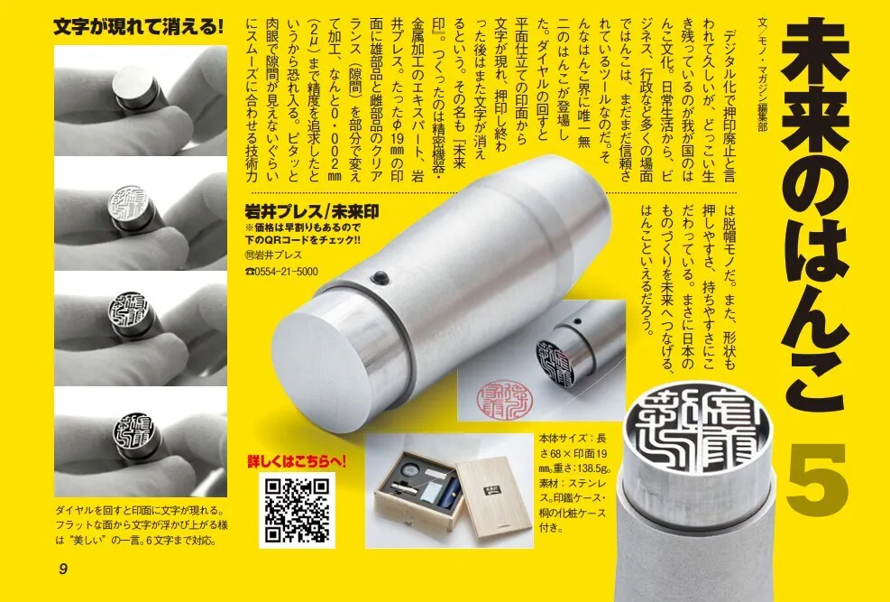 デジタル化が進む世界において、あえて「ものを使ってしるし」を残すことの意味が問われる現代、必要な時にだけ自分のアイデンティティーを示すようにしるしが出てくるシステムを、私たち金属加工のプロが挑んで生まれたのがこの未来印です。