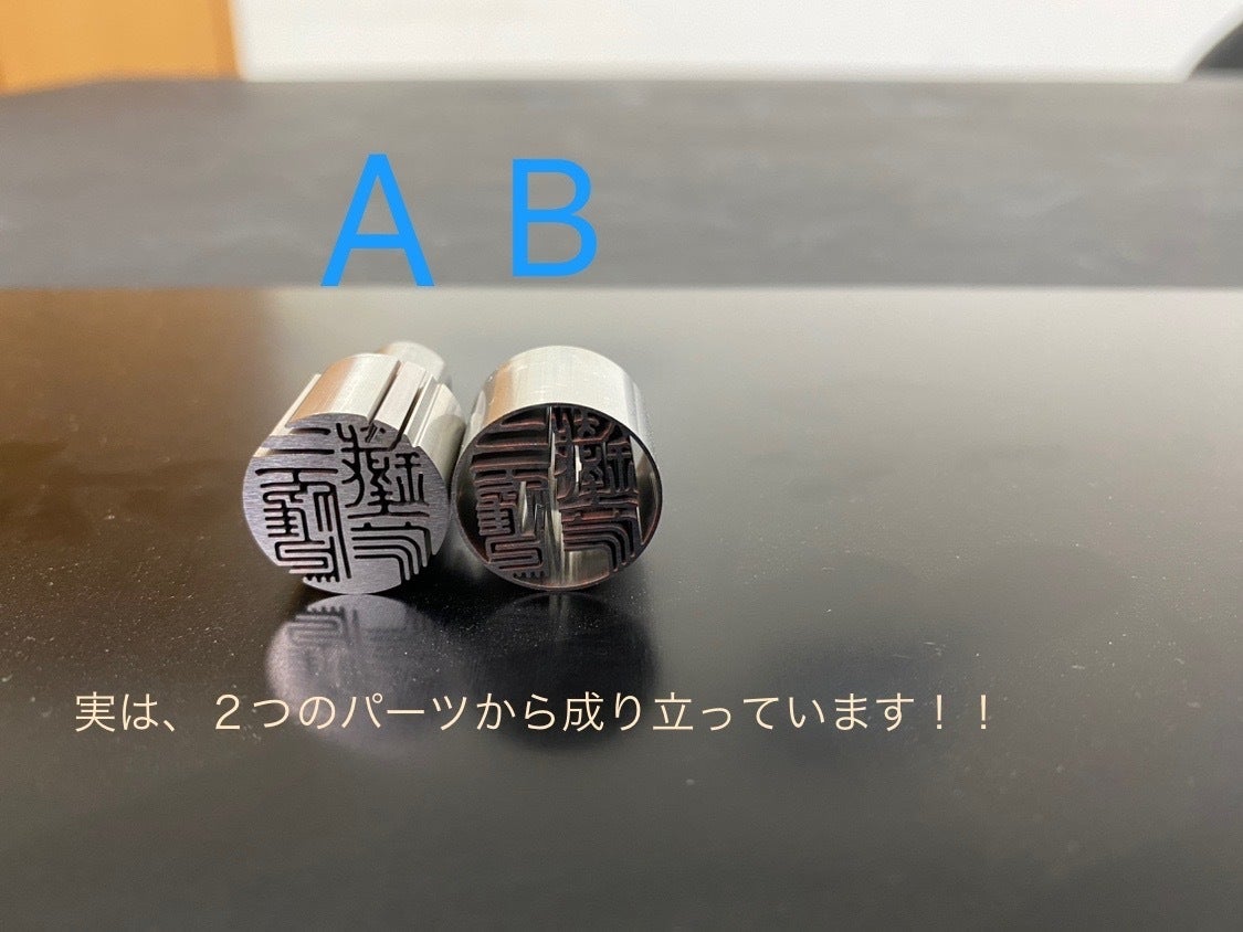 雄パーツと雌パーツの隙間を0.002mmにすることによって印面が見えなくなります。
