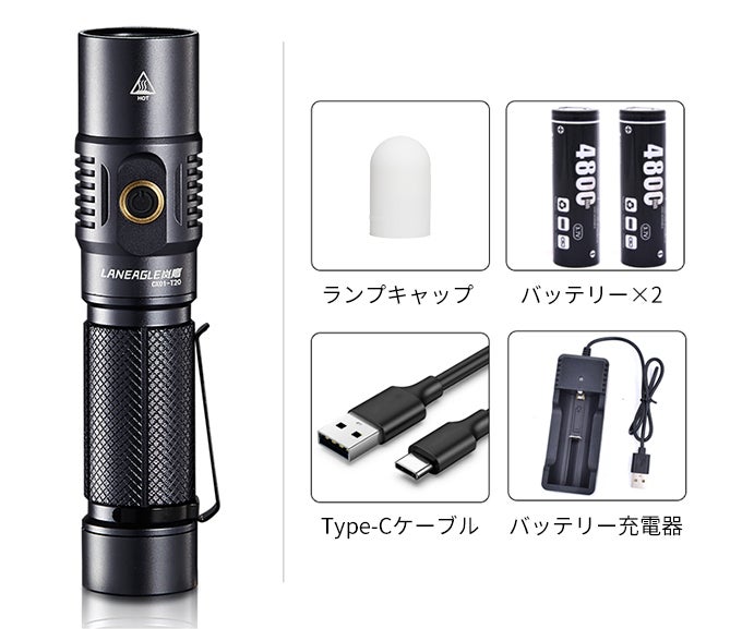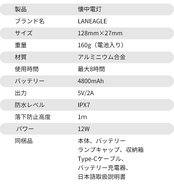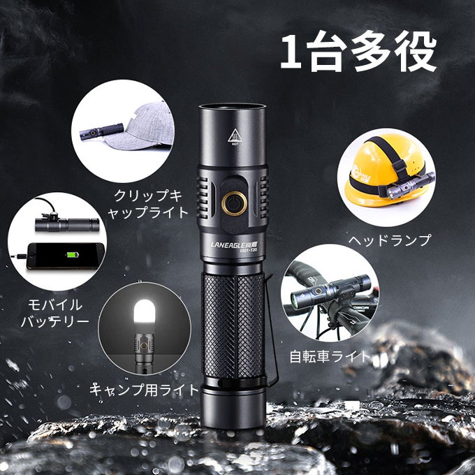 明るく照明・照射モード切替・スマホを充電・防水耐衝撃など複数の機能をワンセットにする懐中電灯「LANEAGLE」。