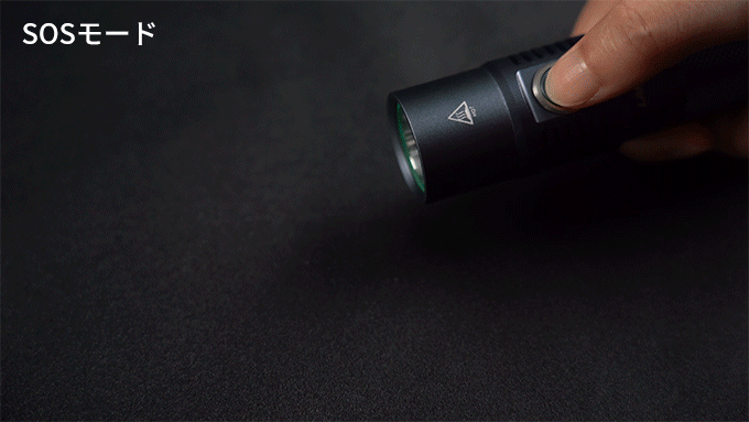 点滅モード・SOSモードも搭載され、遭難や災害などの非常時に自分の位置を周囲に知らせることができます。また、車通りの多い夜道でのランニングや防犯にも活躍します。