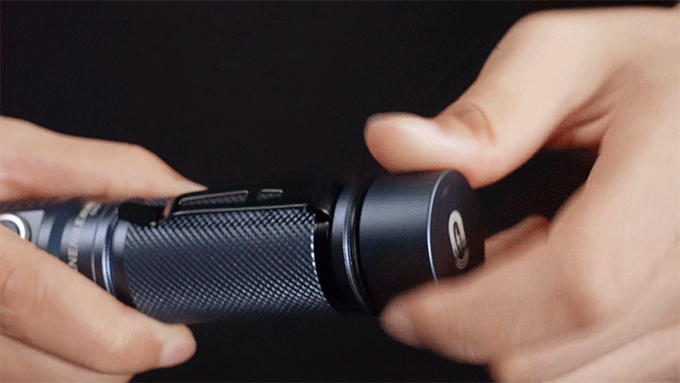 懐中電灯のテールキャップは回転して取り外せますので、電池の交換が手軽に行えます。電池を交換することで、電力切れの際にもすぐに対応できて便利です。