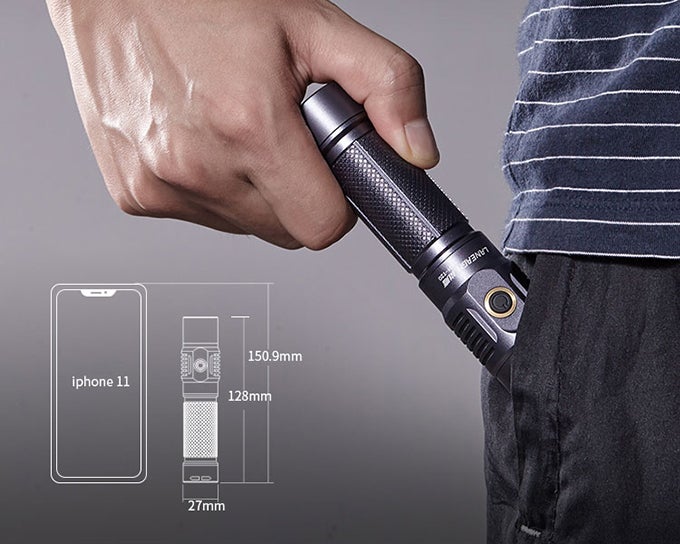 128mm(長さ)×27mm(直径)のコンパクトサイズ、重さもわずか160g(電池入り)で、緊急時にバッグに入れて簡単に持ち運ぶことができ、車で使用する場合にも場所を取りません。