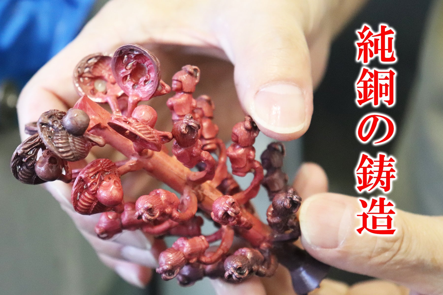 ジュエリー・アクセサリーというと、一般的には金・銀・プラチナ、そして真鍮といった金属の合金を鋳造し磨き上げて作るのが通常です。ですが土器や土偶の質感を再現するためにこれらの金属はちょっとイメージが違う。純銅で鋳造してみてはどうか、ということで取引のある会社にお願いしました。