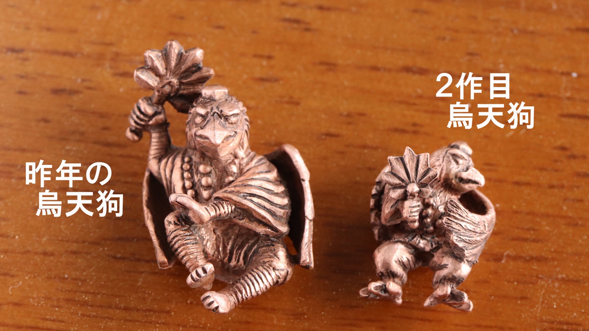 昨年のプロジェクトにも登場した「烏天狗」。今回は立つことができる作品になりました。