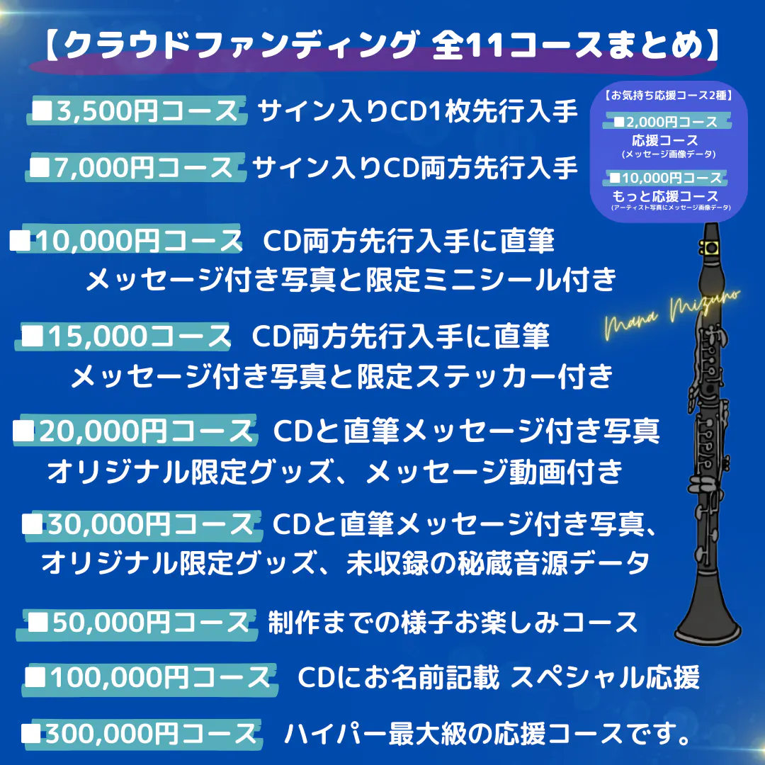 クラリネット版とEWI(ウィンドシンセサイザー)版のCDをそれぞれ、好条件できちんと制作したいです。