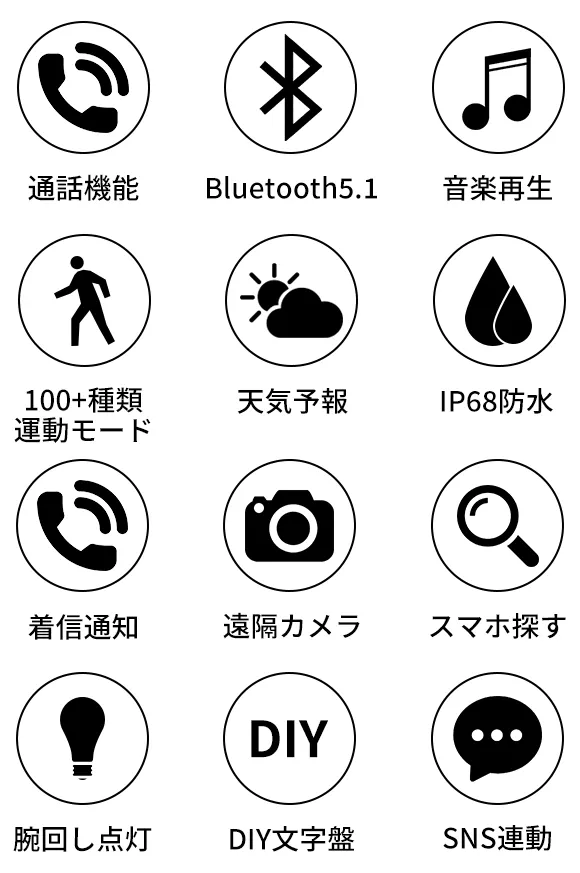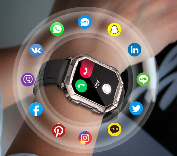 Bluetooth5.1が搭載され、通信範囲と転送速度が大幅に改良され、従来より省電力の上に、接続もより安定になります。Bluetoothで「KUMIWear」とスマホを簡単に同期することができます。LINE、Facebook、Instagram、Twitterなどに対応しています。
