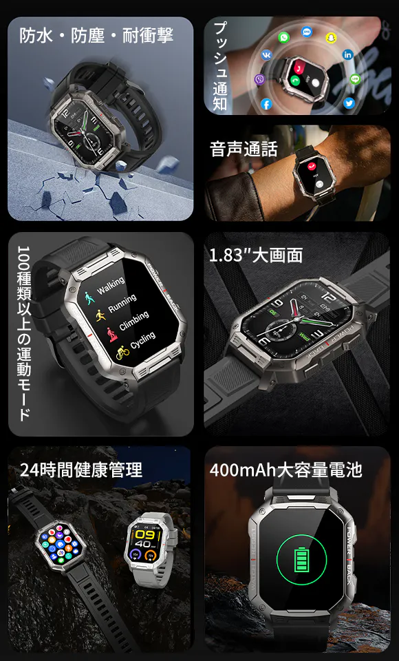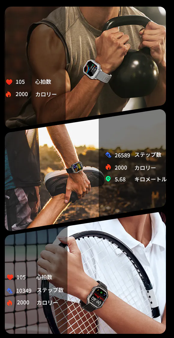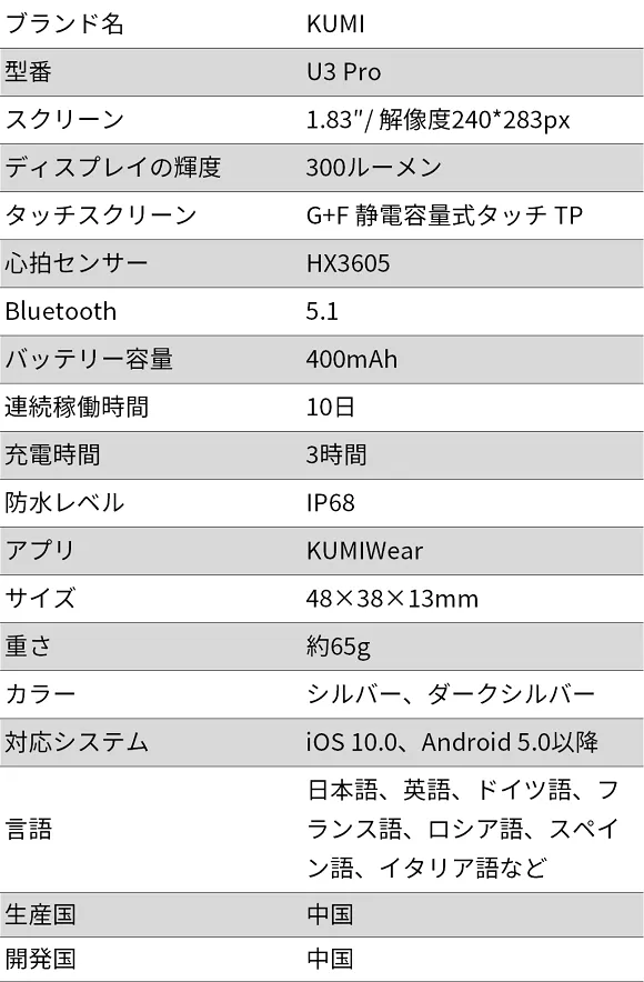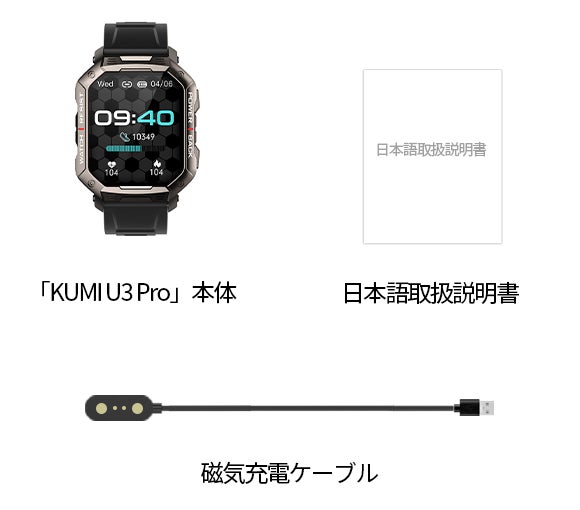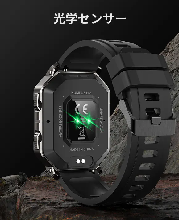 アウトドアとスポーツが大好きな人のために開発したスマートウォッチ「KUMI U3 Pro」。耐衝撃性・IP68防水・超長稼働・100種類以上のスポーツモード、ファッション性と実用性を兼ね備えた逸品です。